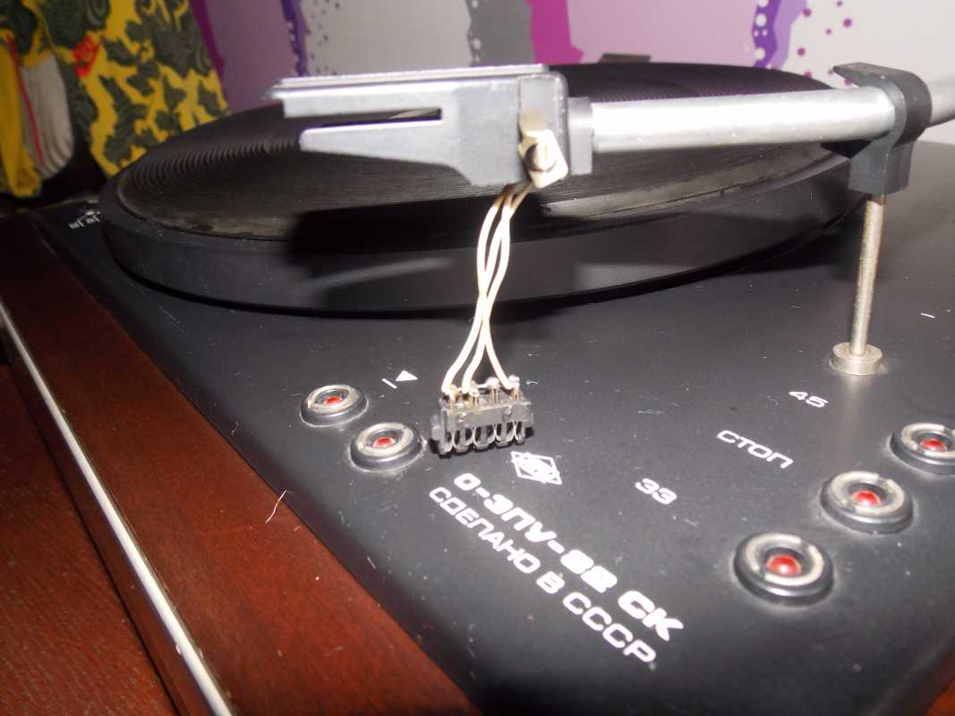 посмотреть) синего цвета, смазав шарик подшипника оси обороты стабилизпровались. Но 33-ю скорость держит на включенной 45-ой, причина скорее всего в высохших конденсаторах. Итак одна проблема отпала, осталась главная-звукосниматель. Родная головка в этом проигрывателе была ГЗМ 005Д, отличием от стандартной 005 была особенность ее крепления-на салазках.