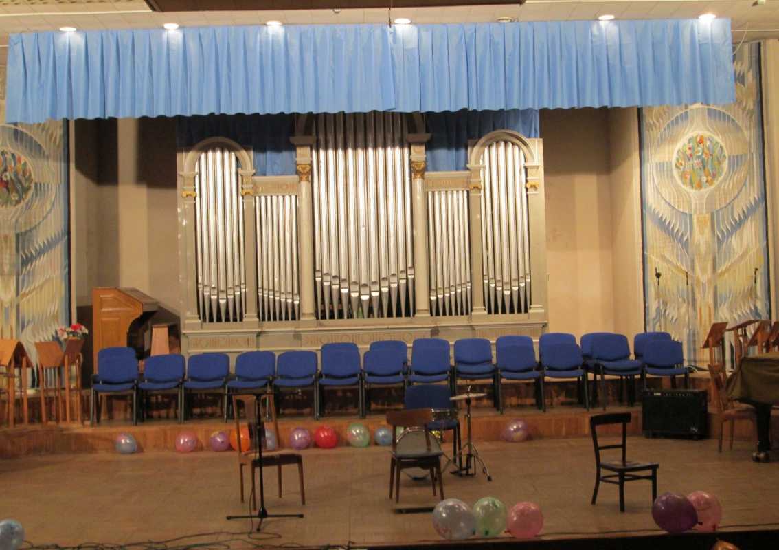 Да не в квартиру,а в концертный зал (450 посадочных мест)ДМШ.Так понятней.