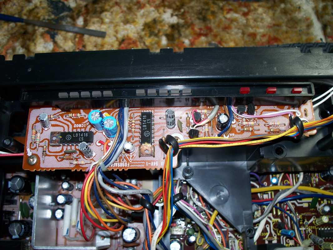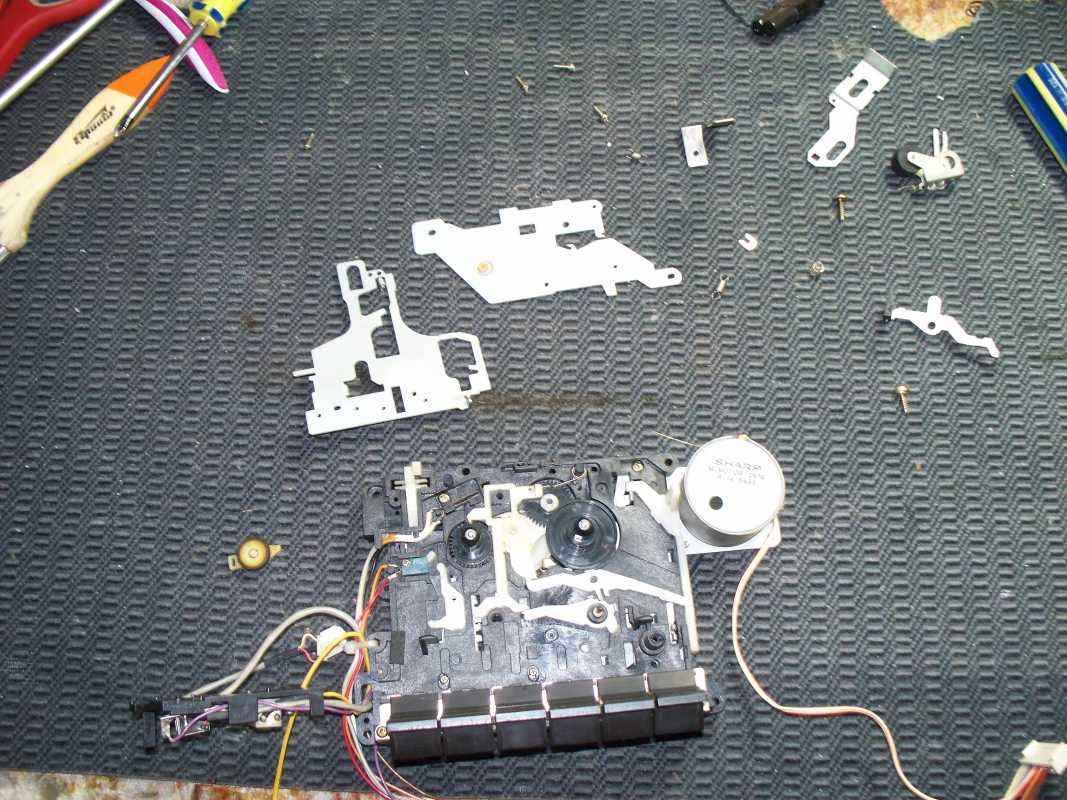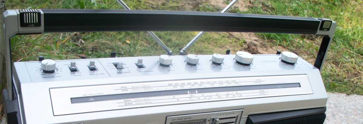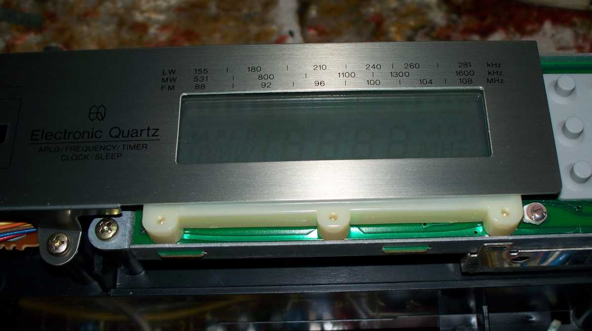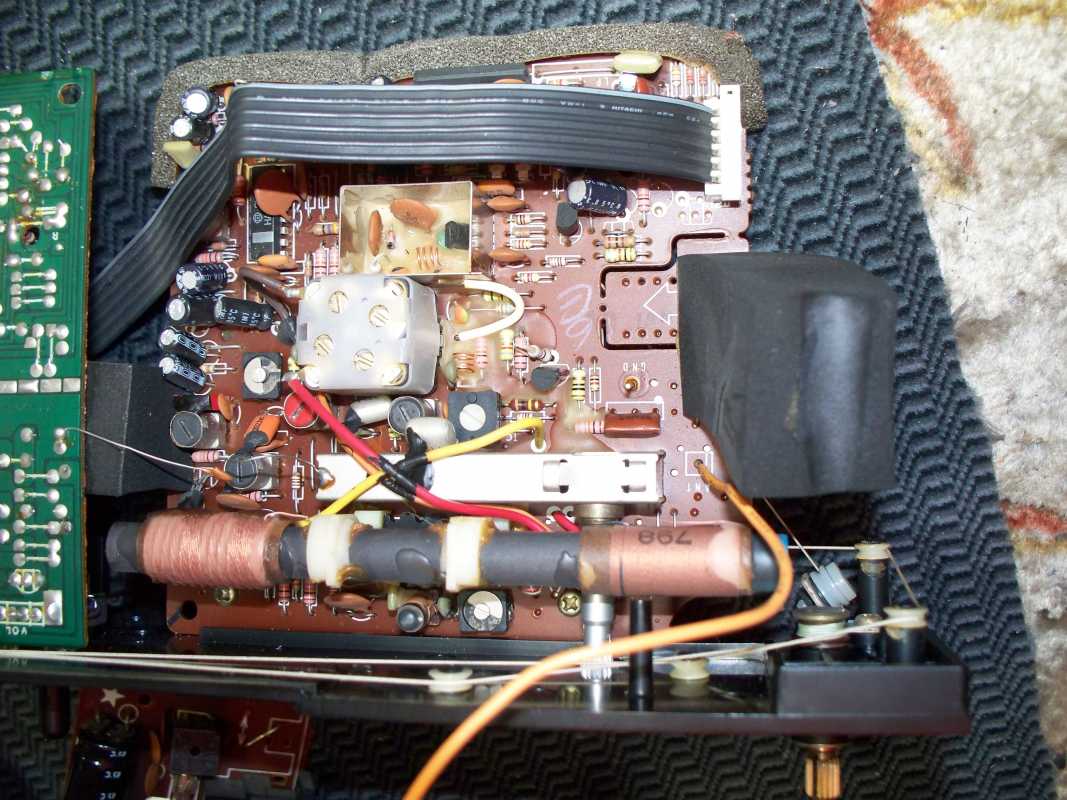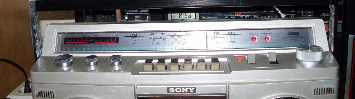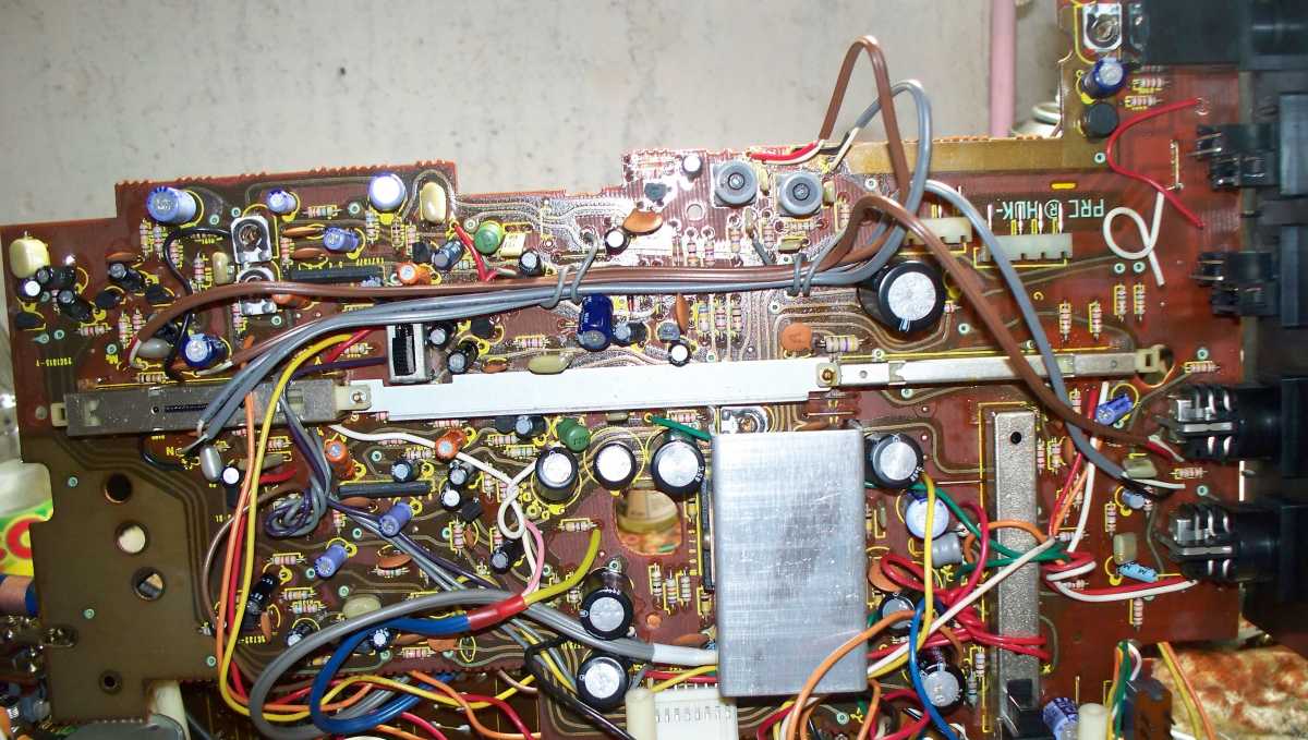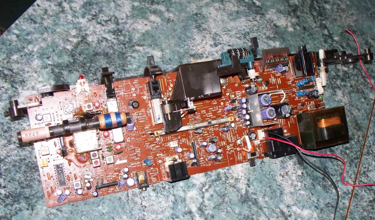 Компания Sharp всегда славилась своими неординарными разработками, вот и данная модель аппарата была в первых радах. Первый эксперимент с цифровым тюнером, Sharp делает смелые шаги не случайно, жидкие кристаллы это его научный конёк, к 70-ых годам уже вышли коммерческие образцы калькуляторов на жидких кристаллах. Sharp GF-9595 H, вот какой интересный аппарат на этот раз попал в мои руки. При покупке данной магнитолы, был определённый рыск купить ни кому не нужный ящик. А дело в том, что в объявлении было указано, что приёмник не запускается, а на всевозможных форумах пишут, что в случаи поломки, отремонтировать его практически не возможно. Я рискнул, правда пришлось потом немного понервничать, но об этом позже. Когда смотришь на эту магнитолу, вспонимаешь, весь смысл слов, «умели же люди делать». Досталась он мне в отличной косметике, как и все с детскими болячками, но ничего страшного, оживим. В плане разбора, всё просто, на мой взгляд. Выкручиваются винты, снимается задняя крышка. На ней кроме антенн, ничего больше нету, хотя нет, ещё установлен защитный экран. Затем снимается верхняя накладка с надписями, и вынимаем всю начинку на каркасе, из передней части корпуса, он абсолютно ни как не крепится, а просто одевается на направляющие для винтов. А вот на передней части уже кое что имеется, а именно блок кнопок управления радио и системой APLD, она здесь на 9 треков, и работает только при установленных батарейках. Пришлось его разобрать, что бы почистить все хромированные кнопочки. Ну и конечно же динамики. Они здесь на 16 см. Вот они мне понравились, очень добротное исполнение, диффузоры серого цвета, с белоснежными тканевыми куполами. Магниты П образной формы. Существует мнение, что динамики с П образными магнитами играют на порядок лучше. Вч динамики пьеза-электрические, в корпусе. Рядом установлены микрофоны. Ну а сейчас переходим к электронной составляющей, всё смонтировано на каркасе, в плане ремонта всё удобно, всё доступно со всех сторон. В глаза бросается огромное количество комплектации от Sanyo, особенно микросхем. Платы, от больших до маленьких, провода, пайка, разъёмы, всё здесь присутствует, как говориться в полном обьёме. Трансформатор хоть он и не больших размеров, но не в размере дело, со своей задачей справляется на все сто. Способен работать в тремя видами напряжения. Так как приёмник в этой модели цифровой, на нём хотелось остановится немного подробнее. Как уже было сказано выше, при проверке магнитолы, пришлось немного понервничать, а всё дело в том, что радио в этом аппарате работает только при установленных трёх пальчиковых батарейках, и когда я ух установил, запускаться оно отказалось, но почистив контакты батареек, всё заработало, и я вздохнул с облегчением.Вот фото отсека для батареек приёмника. Вот собственно и сама плата приёмника, привычный всем КПЕ отсутствует, ну конечно, ведь радио цифровое. Вся информация отображается на дисплее, в выключенном состоянии на нём работаю часы. Настроить их с первого раза было не просто, в смысле намудрили с комбинацией кнопок. Станций в память аппарат можно занести всего лишь пять , маловато, но на те времена, это было круто. А вот эта штучка имеет прямое отношение к настройке часов. Сразу и не разобрал, что это такое, но потом понял, это пьеза динамик. Слишком долго описывать какое именно, но нажав н