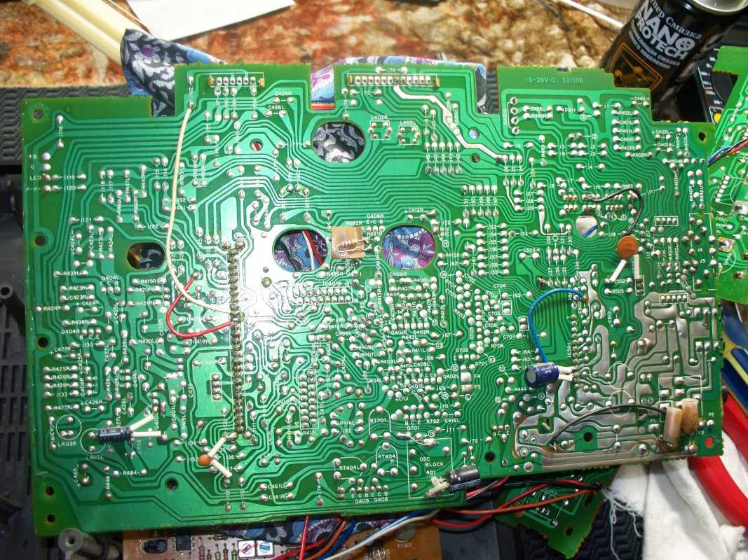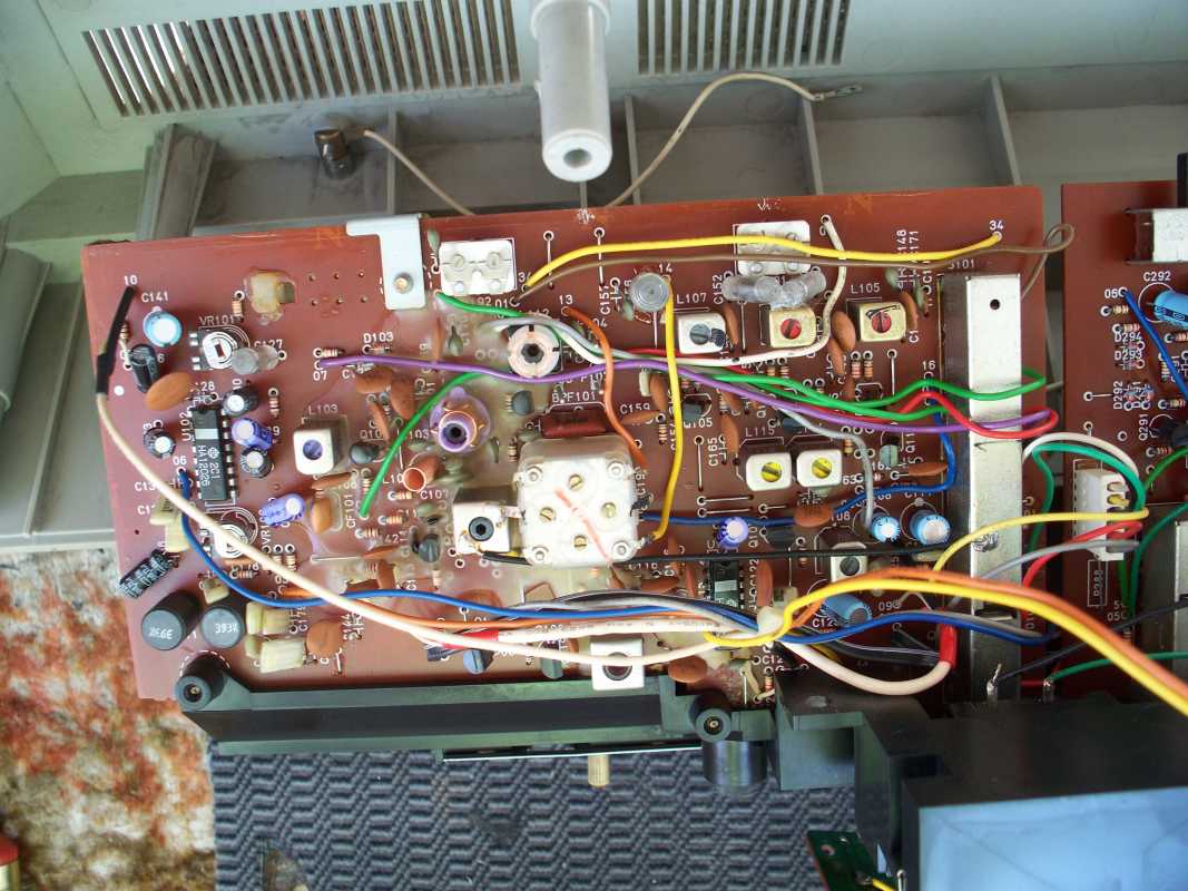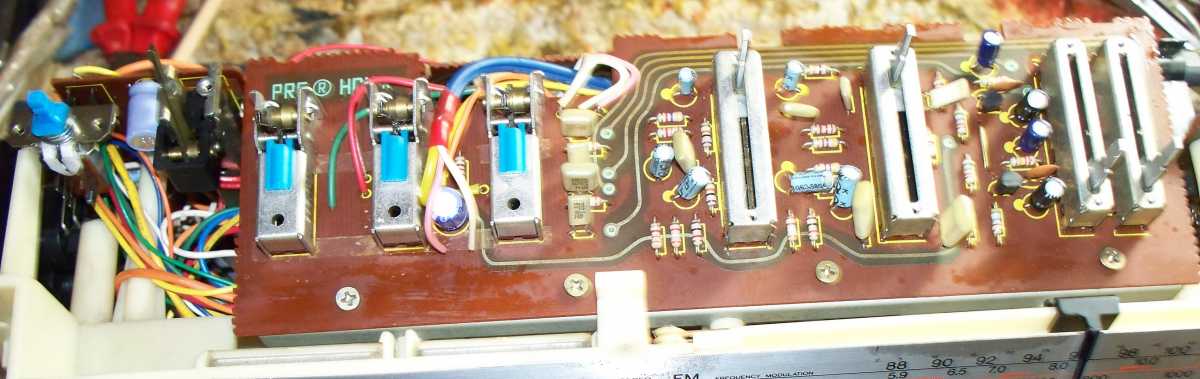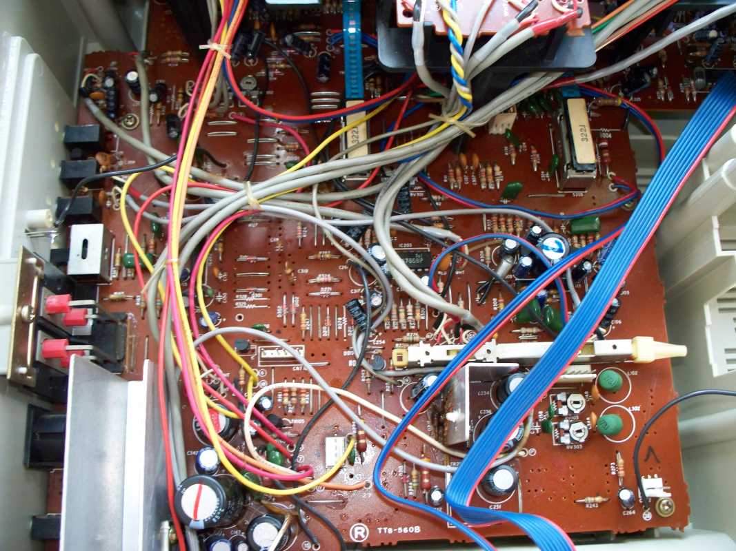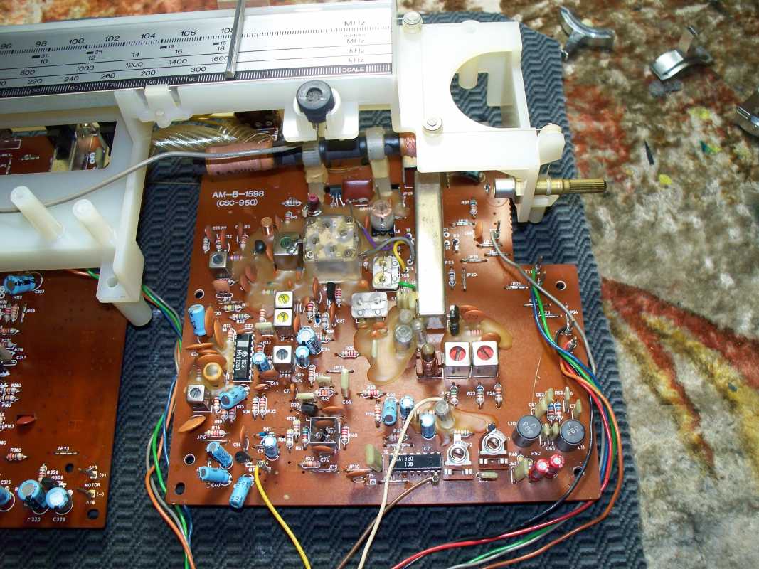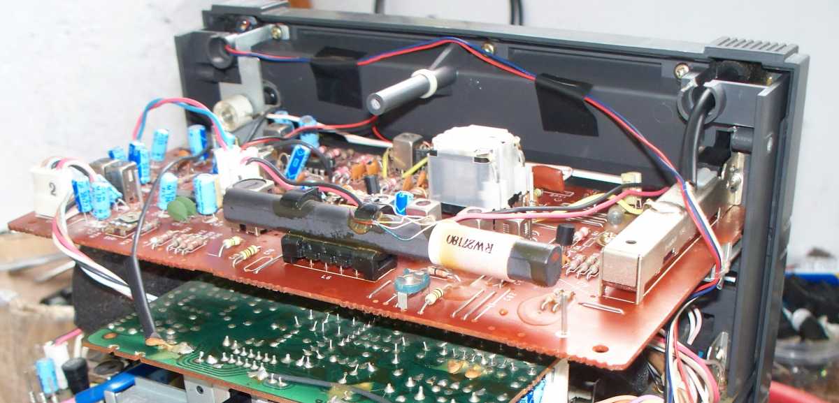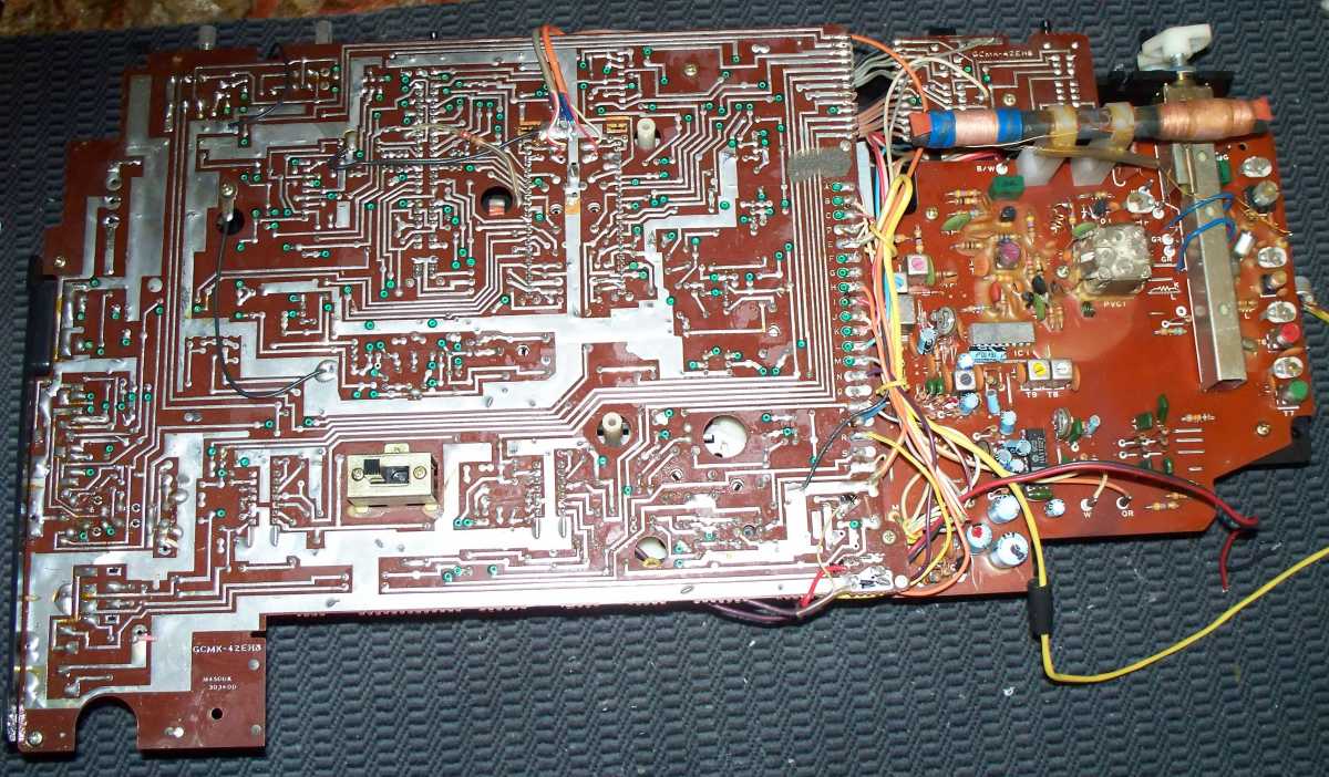 Компания Sharp всегда славилась своими неординарными разработками, вот и данная модель аппарата была в первых радах. Первый эксперимент с цифровым тюнером, Sharp делает смелые шаги не случайно, жидкие кристаллы это его научный конёк, к 70-ых годам уже вышли коммерческие образцы калькуляторов на жидких кристаллах. Sharp GF-9595 H, вот какой интересный аппарат на этот раз попал в мои руки. При покупке данной магнитолы, был определённый рыск купить ни кому не нужный ящик. А дело в том, что в объявлении было указано, что приёмник не запускается, а на всевозможных форумах пишут, что в случаи поломки, отремонтировать его практически не возможно. Я рискнул, правда пришлось потом немного понервничать, но об этом позже. Когда смотришь на эту магнитолу, вспонимаешь, весь смысл слов, «умели же люди делать». Досталась он мне в отличной косметике, как и все с детскими болячками, но ничего страшного, оживим. В плане разбора, всё просто, на мой взгляд. Выкручиваются винты, снимается задняя крышка. На ней кроме антенн, ничего больше нету, хотя нет, ещё установлен защитный экран. Затем снимается верхняя накладка с надписями, и вынимаем всю начинку на каркасе, из передней части корпуса, он абсолютно ни как не крепится, а просто одевается на направляющие для винтов. А вот на передней части уже кое что имеется, а именно блок кнопок управления радио и системой APLD, она здесь на 9 треков, и работает только при установленных батарейках. Пришлось его разобрать, что бы почистить все хромированные кнопочки. Ну и конечно же динамики. Они здесь на 16 см. Вот они мне понравились, очень добротное исполнение, диффузоры серого цвета, с белоснежными тканевыми куполами. Магниты П образной формы. Существует мнение, что динамики с П образными магнитами играют на порядок лучше. Вч динамики пьеза-электрические, в корпусе. Рядом установлены микрофоны. Ну а сейчас переходим к электронной составляющей, всё смонтировано на каркасе, в плане ремонта всё удобно, всё доступно со всех сторон. В глаза бросается огромное количество комплектации от Sanyo, особенно микросхем. Платы, от больших до маленьких, провода, пайка, разъёмы, всё здесь присутствует, как говориться в полном обьёме. Трансформатор хоть он и не больших размеров, но не в размере дело, со своей задачей справляется на все сто. Способен работать в тремя видами напряжения. Так как приёмник в этой модели цифровой, на нём хотелось остановится немного подробнее. Как уже было сказано выше, при проверке магнитолы, пришлось немного понервничать, а всё дело в том, что радио в этом аппарате работает только при установленных трёх пальчиковых батарейках, и когда я ух установил, запускаться оно отказалось, но почистив контакты батареек, всё заработало, и я вздохнул с облегчением.Вот фото отсека для батареек приёмника. Вот собственно и сама плата приёмника, привычный всем КПЕ отсутствует, ну конечно, ведь радио цифровое. Вся информация отображается на дисплее, в выключенном состоянии на нём работаю часы. Настроить их с первого раза было не просто, в смысле намудрили с комбинацией кнопок. Станций в память аппарат можно занести всего лишь пять , маловато, но на те времена, это было круто. А вот эта штучка имеет прямое отношение к настройке часов. Сразу и не разобрал, что это такое, но потом понял, это пьеза динамик. Слишком долго описывать какое именно, но нажав н