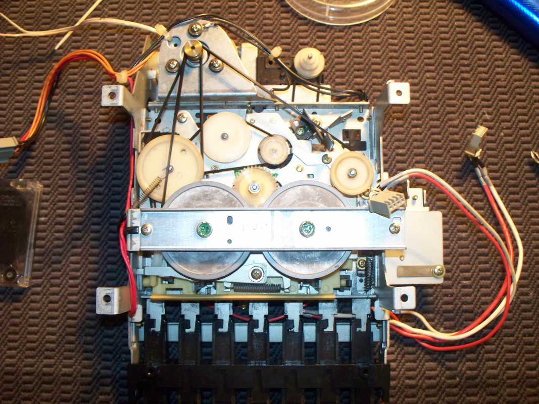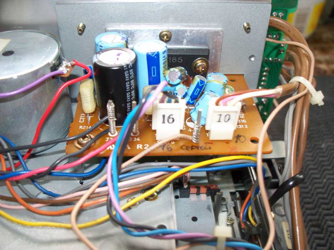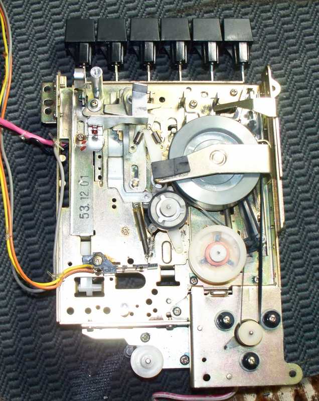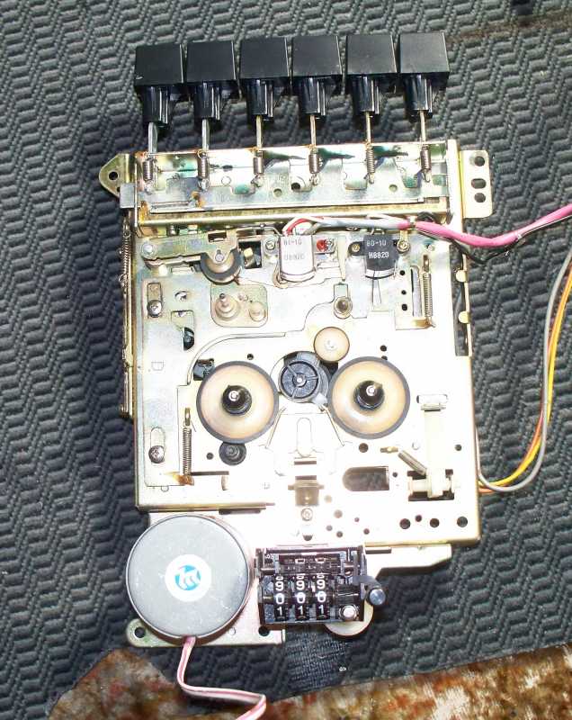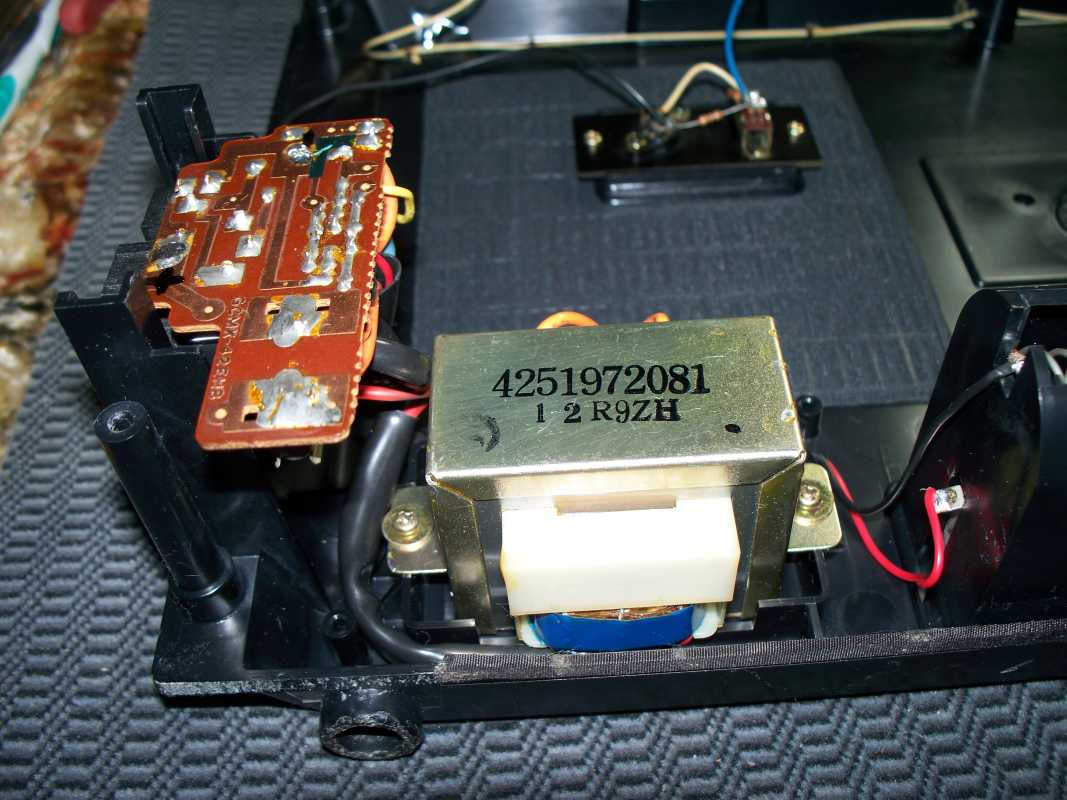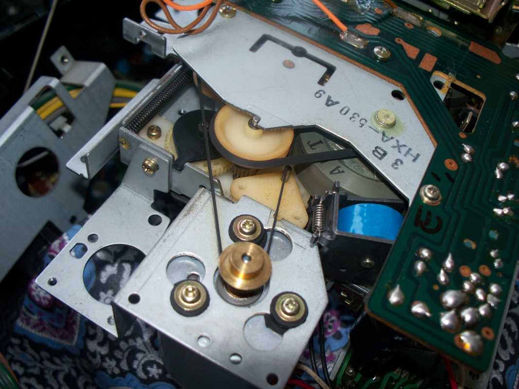 Конкурс приурочен к дню смеха, подходит к концу, а желающих поучаствовать в нём что то нету. Вот я решил представить обзор магнитолки с обманчивой внешностью. AIWA CS-600E, в моём распоряжении их оказалось аж две штуки. Раньше не приходилось с ними иметь дело, хотя у знакомых они были, но мнения разных людей были настолько противоречивы, одни утверждали что это хорошо поющая магнитола, другим она не нравилась, и по этому когда появилась возможность её приобретения, не задумываясь её купил и вторую на всякий случай, пускай будет. Магнитола досталась мне в хорошей косметике, с рабочим приёмником, но неисправным ЛПМ, со слов бывшего владельца этого аппарата, в ней был неисправен моторчик, и якобы он какой то мудрёный. Почему то мне казалось, что эта магнитола должна быть напичкана платами, проводами и т.д., но на деле оказалось всё наоборот, я даже несколько был разочарован разобрав её. Сняв переднюю часть, а этот аппарат разбирается именно так, я увидел грустную картинку, полупустая, с двумя маленькими платами верхней компоновки. Плата приемника. Основная плата скромных размеров. Извлекаются эти две платы с корпуса вместе, и шкала приёмника с механизмом настройки и ЛПМ. По середине лицевой части магнитолы расположено информационное табло с пиковым светодиодным индикатором, диодом питания, FM стерео и записи. Все органы управления находятся на передней части. Снизу корпуса расположен трансформатор, и почему то он и плата выпрямителя разнесены по разным углам, соединены между собой приличным жгутом проводов. На плате два предохранителя, первичный и вторичный, не часто такое встретишь. В центре расположен ЛПМ. Извлекается из корпуса просто, но вот дальше, все провода припаяны к плате, и лишние движения паяльником делать не хотелось, пришлось устранять все проблемы будучи привязанным проводами. Лентопротяжка сделана добротно, имеет систему с Soft-touch управлением, по вине которой, как мне кажется и перегорает большое количество моторчиков., большой маховик тон вала, мощный рычаг включения записи. Головки закрыты своеобразным защитным экраном. Мотор действительно оказался перегоревший, но ничего необычного в нём я не заметил, мотор от фирмы MATSUSHITA, 12V, левого вращения. Пришлось снять мотор со второй магнитолы, на неё потом что то подберу. После установки нового мотора, замены пассиков, запустил ЛПМ, и здесь всплыла ещё одна неисправность, подмотка кассеты не работала, а причина оказалась в треснутой резинке на ролике. Долго ломал голову, что же туда поставить, ведь пресловутые колечки из сантехнического магазина туда не поставишь. И вот выход был найден. Взял старый прижимной ролик подходящего размера, снял резинку, отрезал узенькую полоску, и всё под моточный ролик готов, ставим его на место и всё прекрасно работает. Передняя часть изнутри тёмно синего цвета, на ней расположены динамики и микрофоны, хочется отметить качественные Вч динамики, Вч 14 см, общая мощность 14Wt, что в сочетании с функцией DSL (Dynamic Super Loudness) выдают отличный и сочный бас. Кстати, решётки динамиков тоже темно синего цвета, вокруг них также присутствует обрамление синего цвета, плюс хром, смотрится очень оригинально. Шкала приёмника реализована не очень удачно, она закрыта не съёмным стеклом, и что бы почистить там пыль, пришлось повозиться. Так же были изготовлены новые насадки на