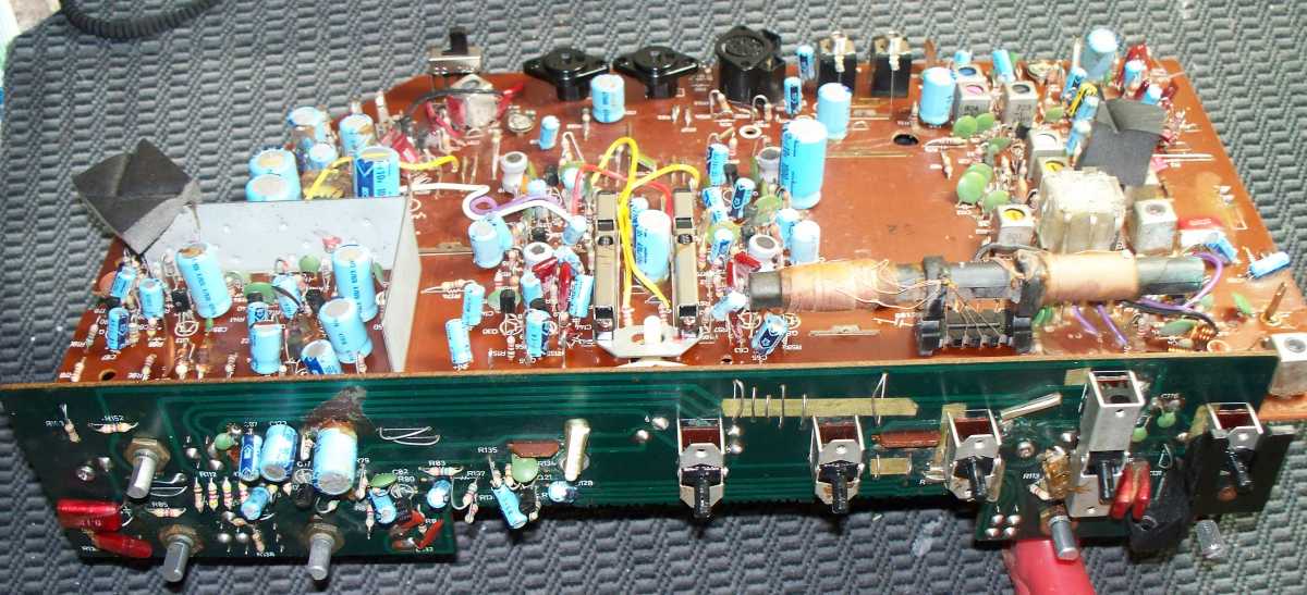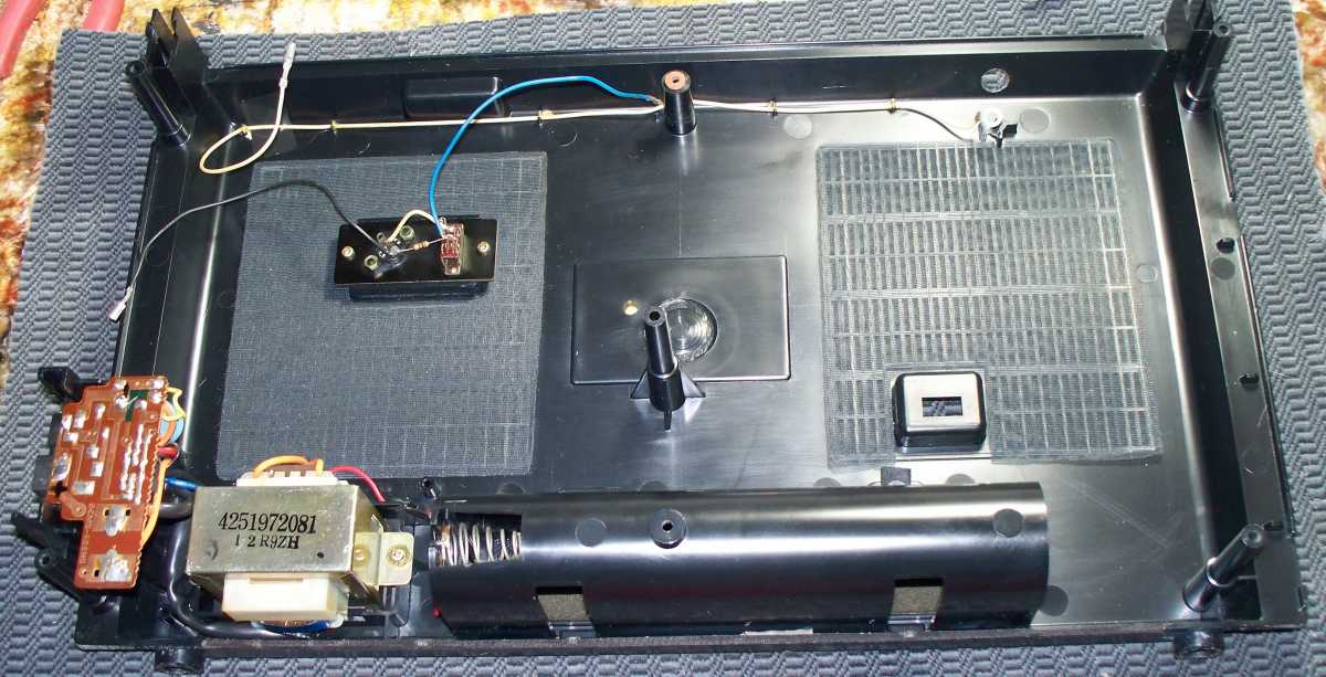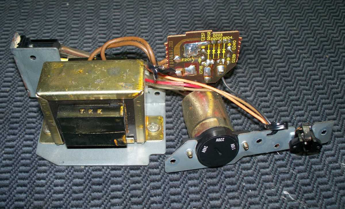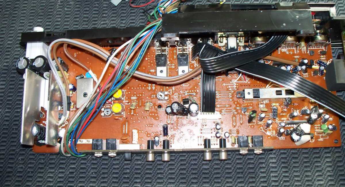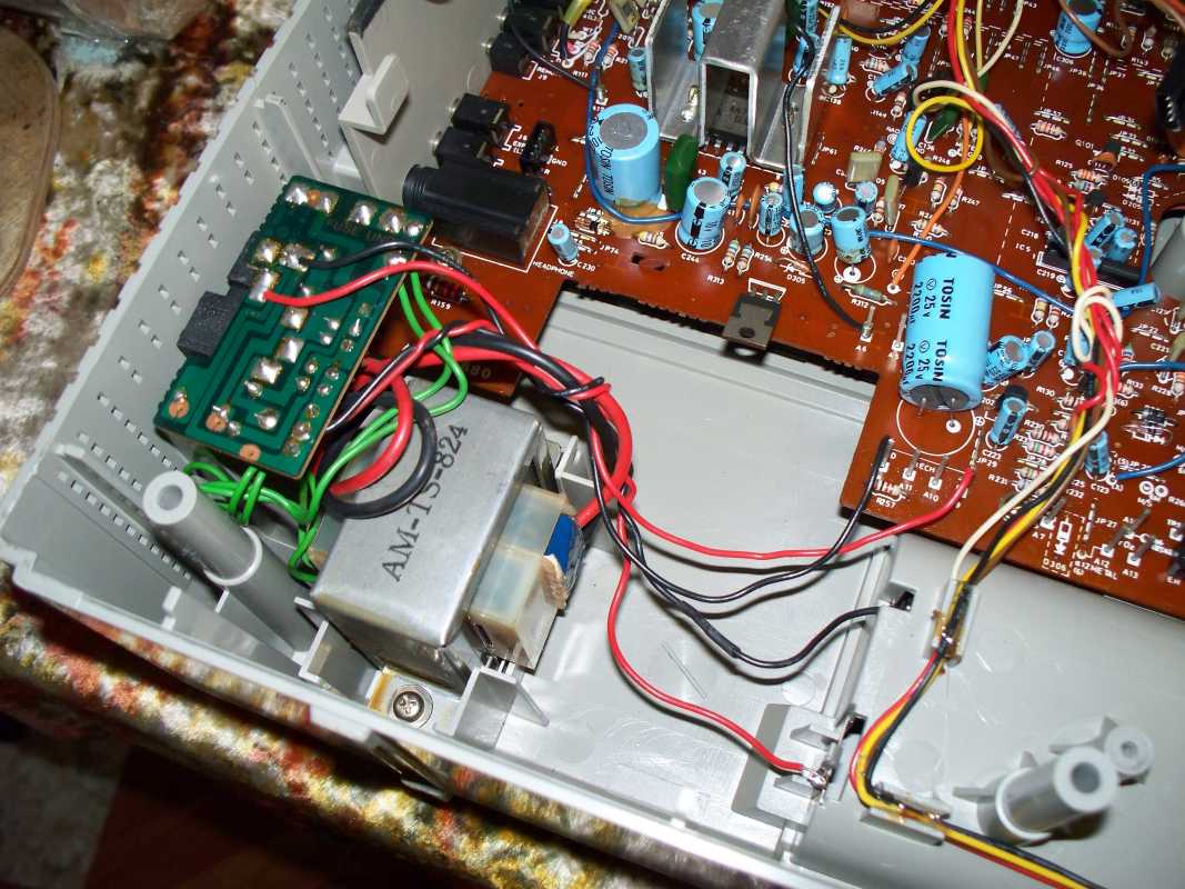 Многие аппараты от SANYO не уважают в плане починки, вот и я прочитав инфу в нете, честно говоря, испугался. А рассказ мой будет о магнитоле SANYO M4500LU. В прочем обо всём попа рядку. Ещё года два назад, когда только начал увлекаться винтажными аппаратами, попала ко мне данная магнитолка. Опыта ни какого, аппарат полу рабочий, да и чистка не мешала бы. Залез я в интернет, в надежде что то найти о данном аппарате, и надо же было мне наткнуться на статейку, где мастер честно говоря не лесно отзывался об данном аппарате, дескать, магнитола вообще не ремонтируется, всё ужасно сделано и т.д. и т.п. После долгих раздумий, я всё же решил не рисковать, и моя магнитолка была продана. После этого ещё парк раз в поле моего зрения попадал этот аппарат, и каждый раз , я проходил мимо. Но вот симпатичный дизайн не давал мне покоя, да и опыта вроде немного прибавилась, и вот Sanyo снова у меня. Честно говоря никаких сложностей в этой магнитоле я не заметил, да много проводов, да нет разъёмов, тем интереснее процесс. Предлагаю вам убедится в правоте моих слов, не зря я назвал свой обзор « Ложная паника». И так начинаю разбирать эту ужасную и страшную магнитолу. Выворачиваем винты на задней крышке и снимаем её, не забыв отпаять провода питания. Пришлось подписать, куда они были припаяны, так как обозначения отсутствуют. Сразу же несколько слов о блоке питания. Внушительных таких размеров и тяжёлый, работает с двумя видами напряжения, здесь же плата выпрямителя. На решётки наклеена ткань, что бы предотвратить попадание во внутрь пыли. Ещё на ней расположена телескопическая антенна и блок с переключателем разъёмом дня подключения внешней антенны. А вот и крышка в зборе, очищена от пыли грязи, и совсем навесным. Что же там внутри.Сразу в глаза бросается экран на плате, ну и конечно же провода, и ни каких разъёмов. К слову провода очень ломкие, пару неосторожных движений и провод отломается в месте пайки, по этому прежде чем лесть глубже, я всё сфоткал. После детального изучения внутренностей, пришёл к выводу, что вся начинка извлекается из корпуса, нужно только выкрутить винты, они все розового цвета, отпаять левый микрофон и динамики. Вся начинка извлекается из передней части на каркасе, включая ЛПМ. Две раздельные платы, все дорожки лужёные. С левой стороны плата приёмника. Радио имеет диапазон FM по 108 Mhz, что не часто встретишь на этой модели. Вот фото передней части плат с ЛПМ. Что бы заменить пассики, нужно немного поработать паяльником, отпаять провода которые идут на контактную группу, и мотор. Провода с головок отпаивать не стал, а просто открутил их, так проще. Вот ЛПМ во всей красе, ни чего сложного, выполнен он из металла, отдельные элементы из пластика. Пассика три штуки и ещё один на счётчик ленты. Мотор имеет внутреннюю плату стабилизации. На передней части расположились динамики, они 12 см и пищалки по 5см. Сетки немного поржавели, по этому их пришлось снять, отпескоструить, и покрасить заново. Не смотря на скромный размер динамиков, магнитола играет относительно не плохо, с ненавязчивым басом. Так же здесь установлены стрелочные индикаторы, без них магнитола бы имела совсем другой вид, смотрятся они оригинально, на фоне чёрного корпуса. Стрелочники, это слабое место этой модели, практически у всех магнитол, хоть один да не работает, мне же повезло, они полностью рабочие. На 