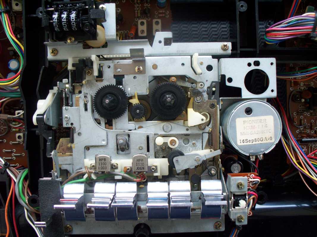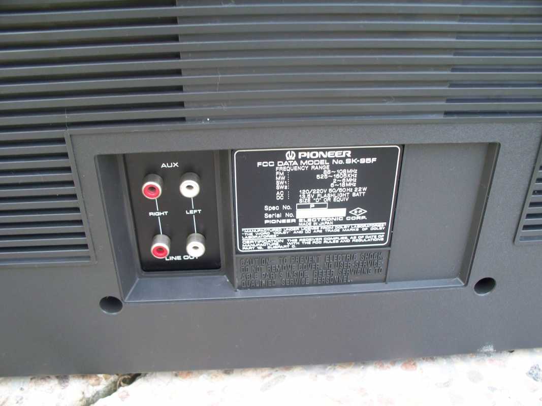 Ну а теперь о самой магнитле. Магнитола приехала в отличном состоянии, полностью рабочая, правда с переделанным приёмником неизвестно под что, сзади была наклеена написана от руки бумажка с словом USA.Отличная внешне, но очень пыльная внутри. Выкручиваем 10 очень длинных винтов, и магнитола разбирается на три части. Фирма Pioneer производила не так уж много магнитол, и поэтому сделаны они качественно. На задней крышке только антенны, на передней динамики, а все платы и ЛПМ на центральной, очень удобный аппарат в плане ремонта. Так выглядит магнитола со снятыми крышками. Платы разнесены по всей магнитоле, много проводов, пайки и разъёмов. Электронные компоненты различных производителей. ЛПМ, как и пишут в интернете довольно сложный, кругом металл, два огромных моховика, клавиши педального типа. Обратите внимание, какой мощный пассик установлен. Крышка подкассетника устанавливается прямо на вал клавиш. Пассики менять не стал, так как они в отличном состоянии, а вот смазки в демпферный механизм пришлось добавить. Динамики родные, Пионеровские- 16 см, на первый взгляд даже можно подумать, что какие то убогие, но это ошибочное мнение, играют они просто шикарно.ВЧ бумажные 4 см. Транс, для уменьшения наводок размещён в экранированной нише. Так же магнитола имеет неплохой набор разьёмов. Ещё одна фирменная примочка от Pioneer, микрофоны вмонтированы в ручку для переноса. Очень не стандартное решение, многие не сразу понимают, что это на ручке. Плата приёмника размещена отдельно. Приёмник перестроен, путём удаления перестроечных резисторов удалось настроить его, но требуется более точная настройка, уж больно намудрили там Польские Кулибины. Похоже что эта магнитола так и напичкана новшествами, вот и ещё одно оригинальное решение, курсор тюнера электронный ,где мнемоническими стрелками указывается направление настройки радиостанции, а также зелёный огонёк на стрелке указывает что приёмник настроен на волну. Управление магнитолой и шкала приёмника расположены сверху. Информационная панель на лицевой части, очень красочно сделана, хром, множество светодиодов. Не в каждой магнитоле встретишь такое. Отдельного внимания заслуживают сетки динамиков, на других аппаратах я не встречал такого, они сьёмные, и сделаны с акустической ткани, с добавление люрексной нити. На солнце всё искрится и переливается блёстками. Вот вроде и всё, надеюсь не утомил Вас. Магнитола очень интересная, с целым радом технических новшеств, которые не часто встретишь в других аппаратах, очень приятный звук, но мне кажется её нужно слушать не очень громко, тогда она вам выдаст все прелести, и покажет на что она способна. Вес аппарата 7 кг, размеры 530 x 280 x 135 mm , год начала производства 1982. Инфа с сайта recallsharp.ru. Pioneer SK-95 относится к высшей, топовой линейке, обладает рядом интересных функций, таких как автоповтор воспроизведения кассеты , поиск песен, до 7 треков, повтор одной песни, система шумопонижения Долби, линейны вход и выход, усиление баса, играет плёнку метал, автоматом определяет плёнку хром, и многое другое. Наряду с фирменными "примочками" и звучит очень приятно. Симпатичный дизайн с изобилием хрома. Очень необычный экземпляр, гордость моей коллекции. Ну собственно фото самой магнитолки, Pioneer SK-95. |