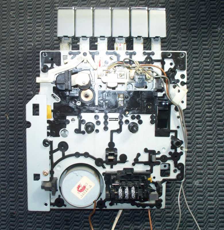 Когда я взял в руки отвёртку и начал снимать заднюю крышку, первая мысль, какая посетила меня, неужели и здесь будет всё как во всех шарпах такого уровня. Вауууу Плата приёмника установлена отдельно. ЛПМ, конечно надёжный и простой, всего один пассик, с системой поиска треков, сплошной металл, так делать могли только в 70х. Огромный маховик тон вала, а рядом электромагнит системы APSS. Заменить пассик оказалось проще, чем я думал, отпаял всего два провода, и с лёгкостью отвернул плату с ЛПМ. А вот и та мелкая неисправность, почему не работал мотор, подняв жгут проводов неисправность была обнаружена ,просто на просто отскочил проводок питания моторчика от платы. Кстати о моторе, он здесь установлен фирмы Matsushita, а не традиционный Sankyo. По клейму на моторе определяем год когда был произведён данный агрегат. Динамики Нч всего 10 см,Вч вообще нет, но не смотря на это магнитола имеет неплохое звучание. Система жизнеобеспечения, а именно трансформатор, не из маленьких, расположен на задней крышке. Работает с тремя видами напряжения. Магнитола имеет очень привлекательную внешность, такой стиль был популярен в те годы. Шкала жёлтого цвета, необычные решётки динамиков, стильная ручка для переноса, шикарная ручка настройки. Очень интересно реализован указатель включённой системы APSS. При включении поиска загорается зелёный глаз, рядом с глазком расположен стрелочный индикатор и светодиод FM стерео. Ну а теперь о самой магнитоле. Начало производства 1976 год, к выдающимся особенностям этого года была разработка магнитолы Sharp GF-8181. Что здесь было необычного? Прежде всего это система Auto Program Search System , магнитола была оснащена , только что разработанной и пущенной в производство высококачественной магнитной головкой, с тончайшим зазором 1,5 микрона и это позволило поднять верхний предел частоты на ленте CrO2 до 15000 Гц. Для магнитол это было достижение, так как этот частотный предел был доступен стационарным декам, также магнитола имеет систему SLEEP, два режима СТЕРЕО, полный автостоп, и т.д. Аппарат имеет относительно небольшие размеры, 368mm*110mm*210mm и вес 4.1 кг. Sharp GF-8181Н. |
