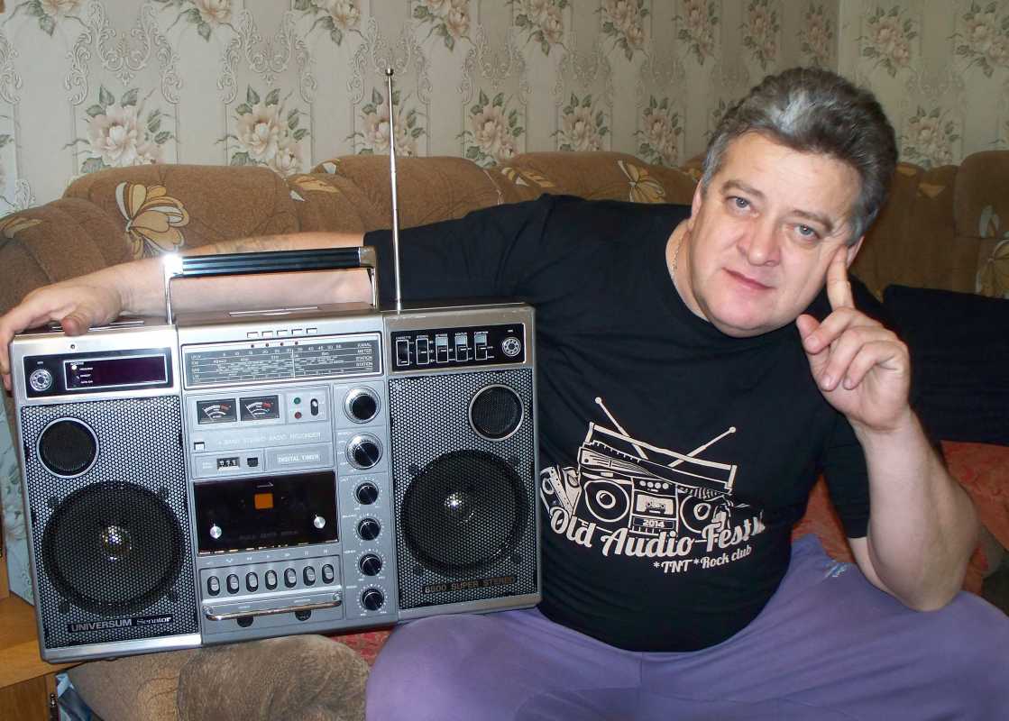 Приёмник в этой магнитоле работал отлично, а вот кассета играть отказывалась, постоянно срабатывал авто стоп, ну и конечно же предстояло всё отмыть и почистить. И так начинаю разбирать, всё очень просто.Всё на разъёмах, минимальное количество пайки. Снимается передняя часть с динамиками, и платой пиковых индикаторов. ЛПМ и все платы остаются на задней части корпуса, но и оттуда всё легко извлекается. Платы две, приёмник и основная .После беглого осмотра понял, вся начинка от SANYO, и это совсем не плохо. Сделано всё надёжно и качественно, как и положено немецкому японцу. В первую очередь начинаю разбираться с ЛПМ. Не такой уж он простой. Сплошной металл, два моховика и множество других диталюшек. Но глаза бояться, а руки делают. Весь процесс описывать не буду, это займёт много времени, скажу лишь одно, повозиться пришлось. Очень своеобразный механизм. Что бы заменить пассики, тоже пришлось включить логическое мышление, как и какой куда натягивается. Что ещё понравилось в ЛПМ, так это плавающая головка, при включении автореверса, она не поворачивается, а плавает в верх- вниз. Так же здесь две кнопки воспроизведения, чтобы работал автореверс, нужно их включать вместе. Стрелка указывает направление проигрывания кассеты. Как я уже писал выше, вся начинка данного аппарата SANYO. Динамики, они так же от «Трёх океанов», белоснежные, с тканевыми куполами, 18 см, звук отличный, в подтверждение тому надписи за сетками. Вч динамики 5см, подключены через конденсатор. Источник питания приличных размеров и тяжёлый. Пройдёмся немного по интерьеру магнитолы. Сборка на высоте, ничего не люфтит не скрипит. Всё управление магнитолы сосредоточено сверху. Очень удобно пользоваться мощными ручками, все они покрыты хромом. На передней панели расположены рычажки управления автореверсом, ниже светодиодный пиковой индикатор и шильдик названия магнитолы. Светодиоды установлены за стёклышкам и работают в разлёт, очень эффектно смотрится. Также имеется один стрелочный индикатор, он показывает уровень сигнала приёмника, и заряд батареек. Кстати в аппарате есть функция экономии энергии при работе на батарейках, она включается соответствующей кнопкой. И на последок, немного истории и технических характеристик. Магнитола скорее всего была заказана у SANYO немецкой торговой маркой RADIOTONE. Аппарат получился очень даже неплохой, со своеобразной и привлекательной внешностью, да и не обделённый звуком и техническими наворотами. Начало производства примерно 1982 год. Магнитола внушительных размеров 525 х 300 х 125 мм, вес 6 кг. На борту имеет всё необходимое- автореверс, авто стоп, Супер стерео, линейный вход , и т. Д. FM правда до 104MHz. Долгое время пользовался ею, очень нравилась, но пришла ей на смену другая магнитолка. RADIOTONE RRC-468L. |