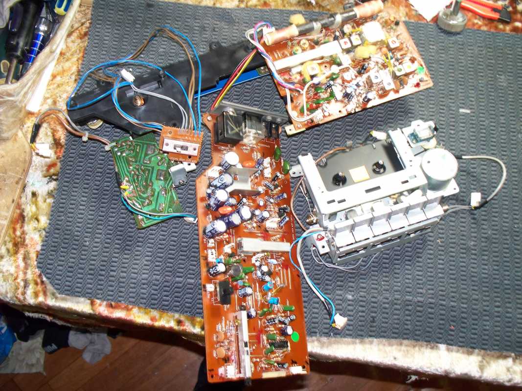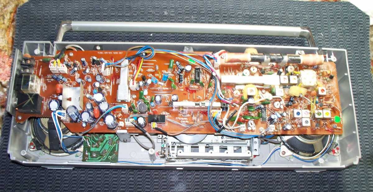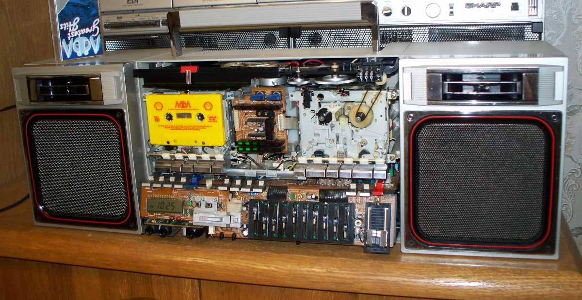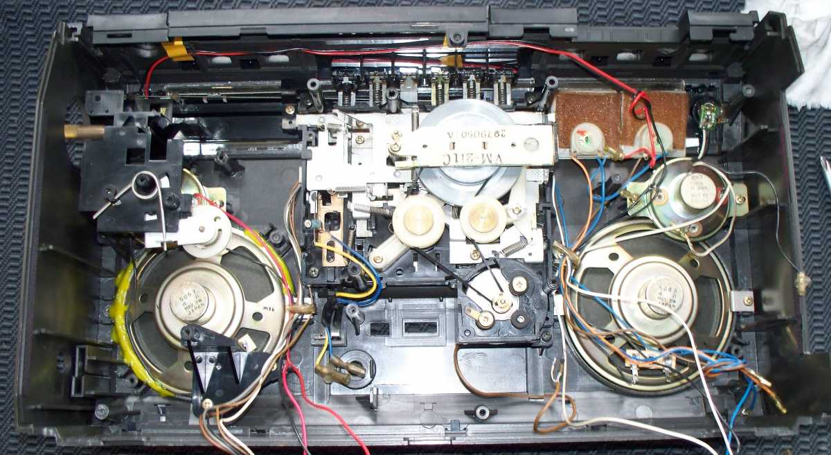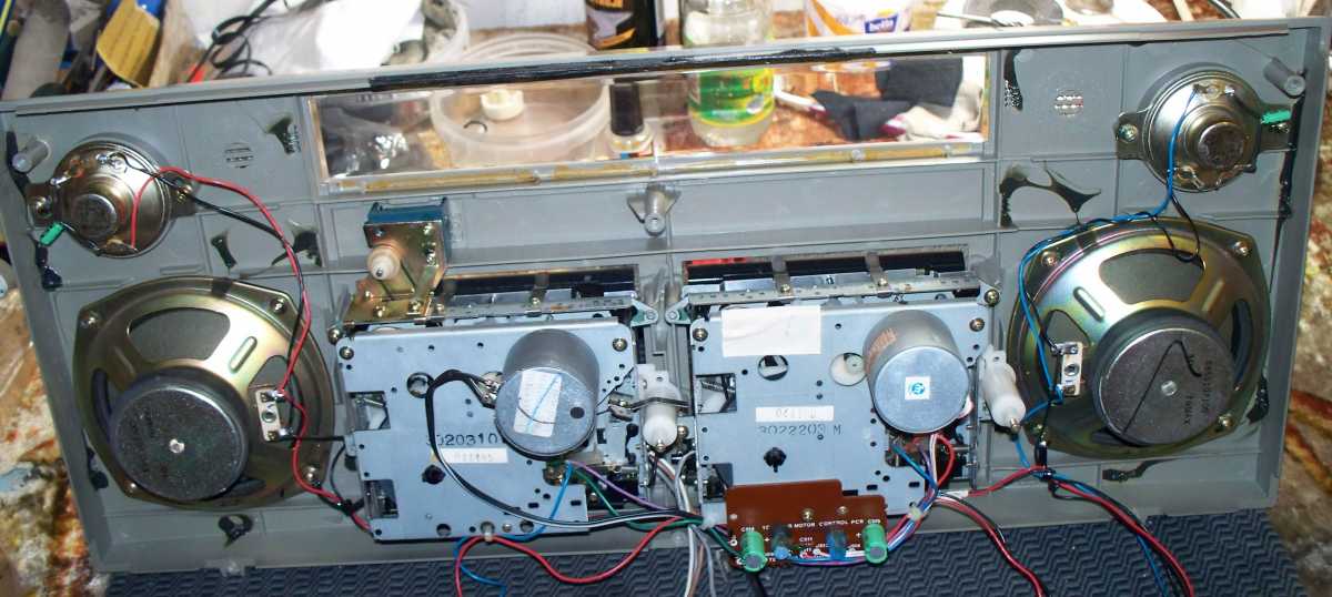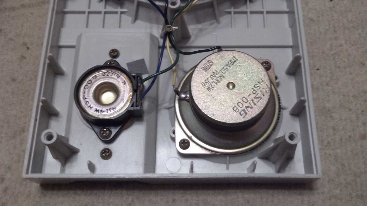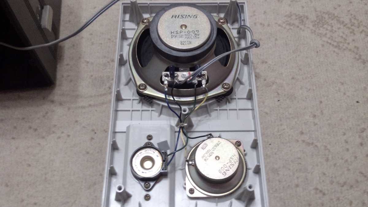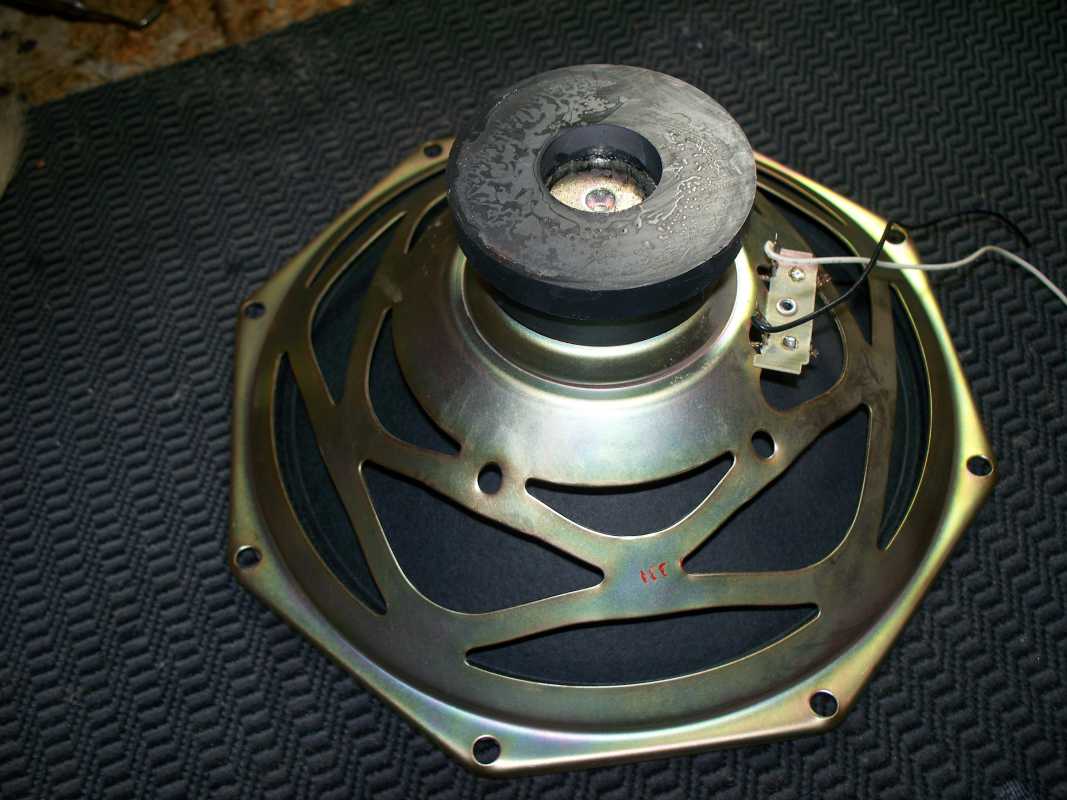 Как и все Шарпы разбирается он очень просто. Сзади выкручиваются винты, и снимается лицевая часть с динамиками. Динамики Шарповские, применяются во многих аппаратах этой марки, диаметром 16см, белого цвета.