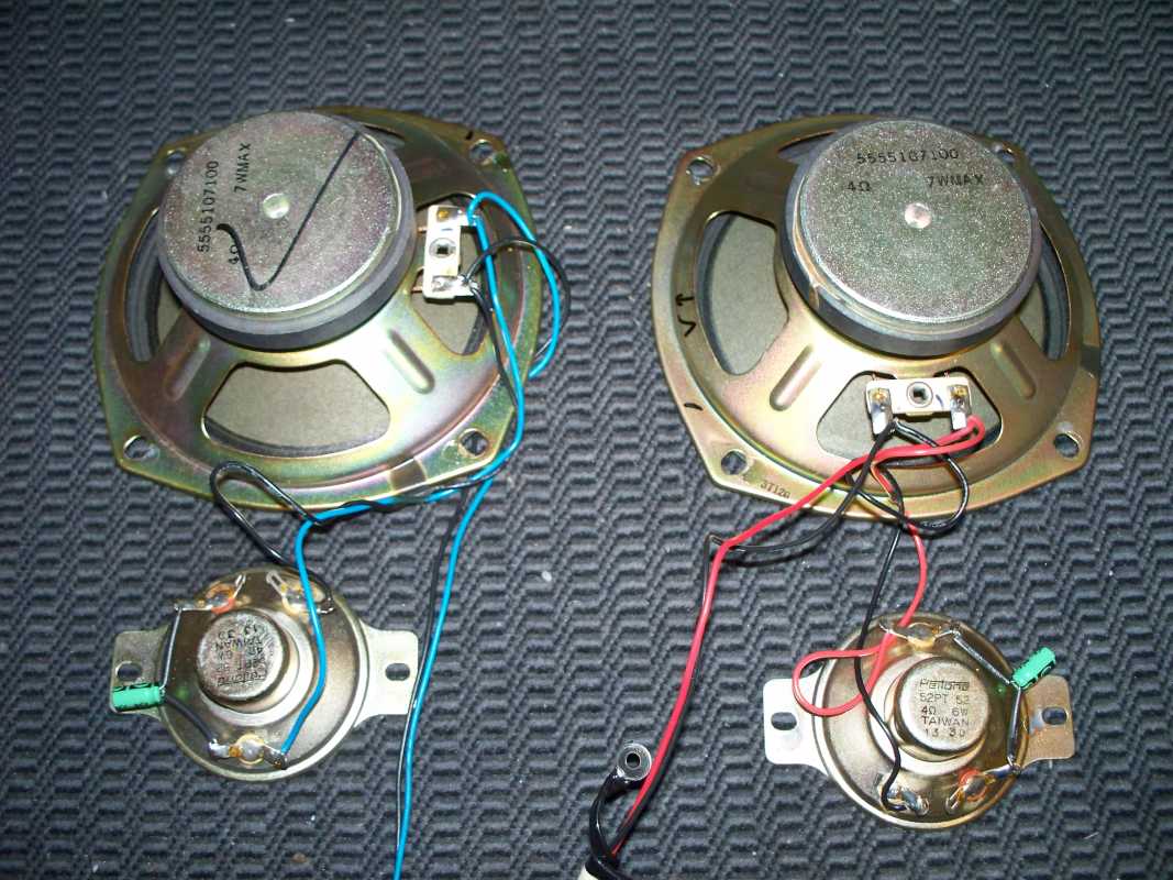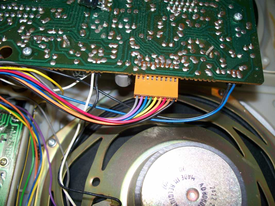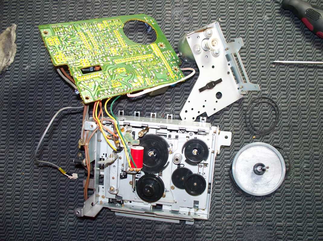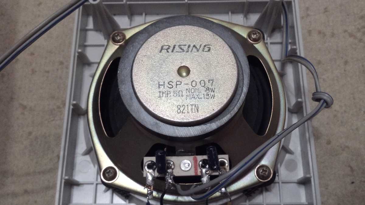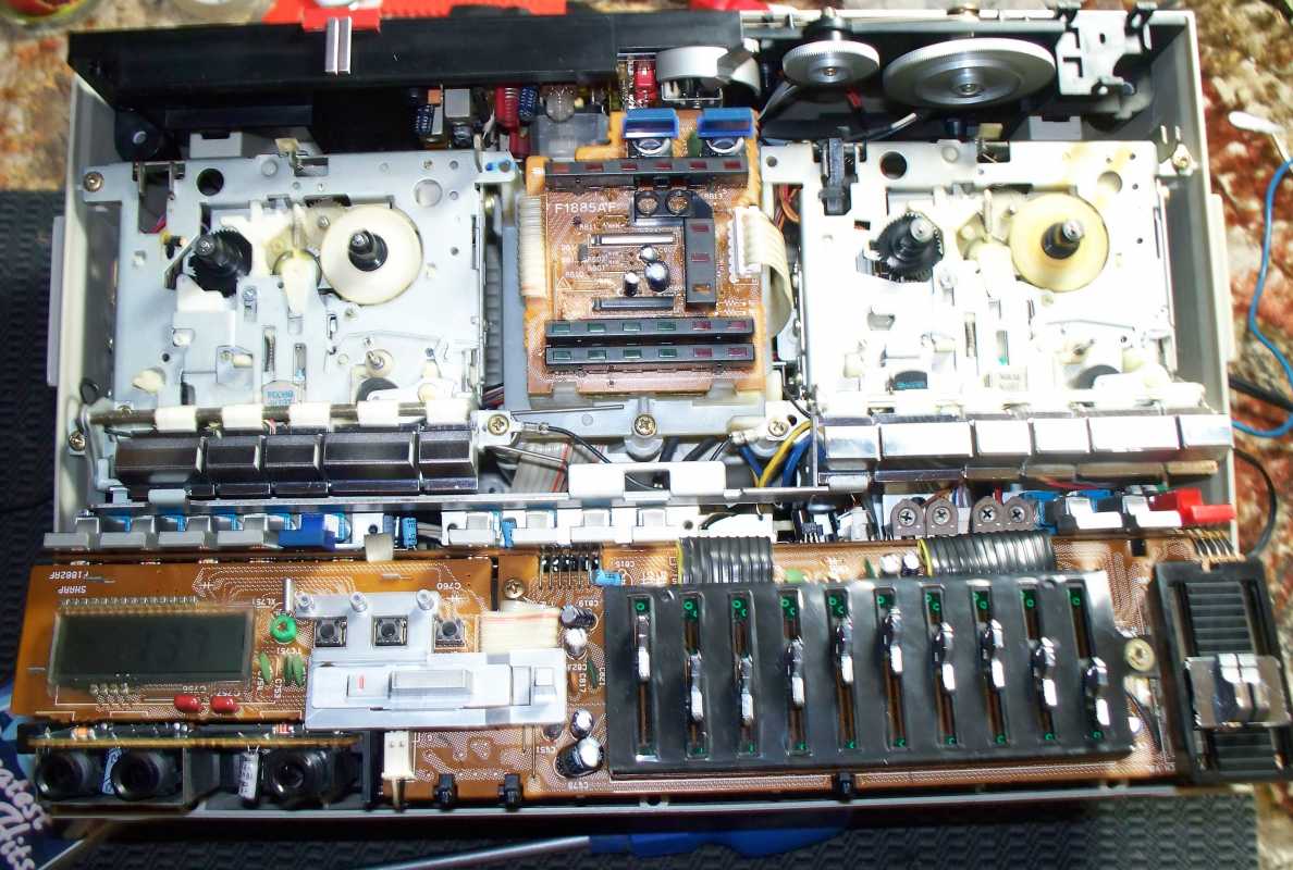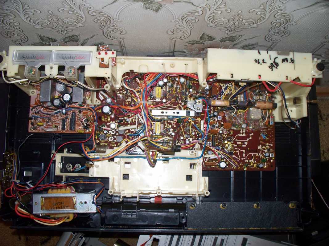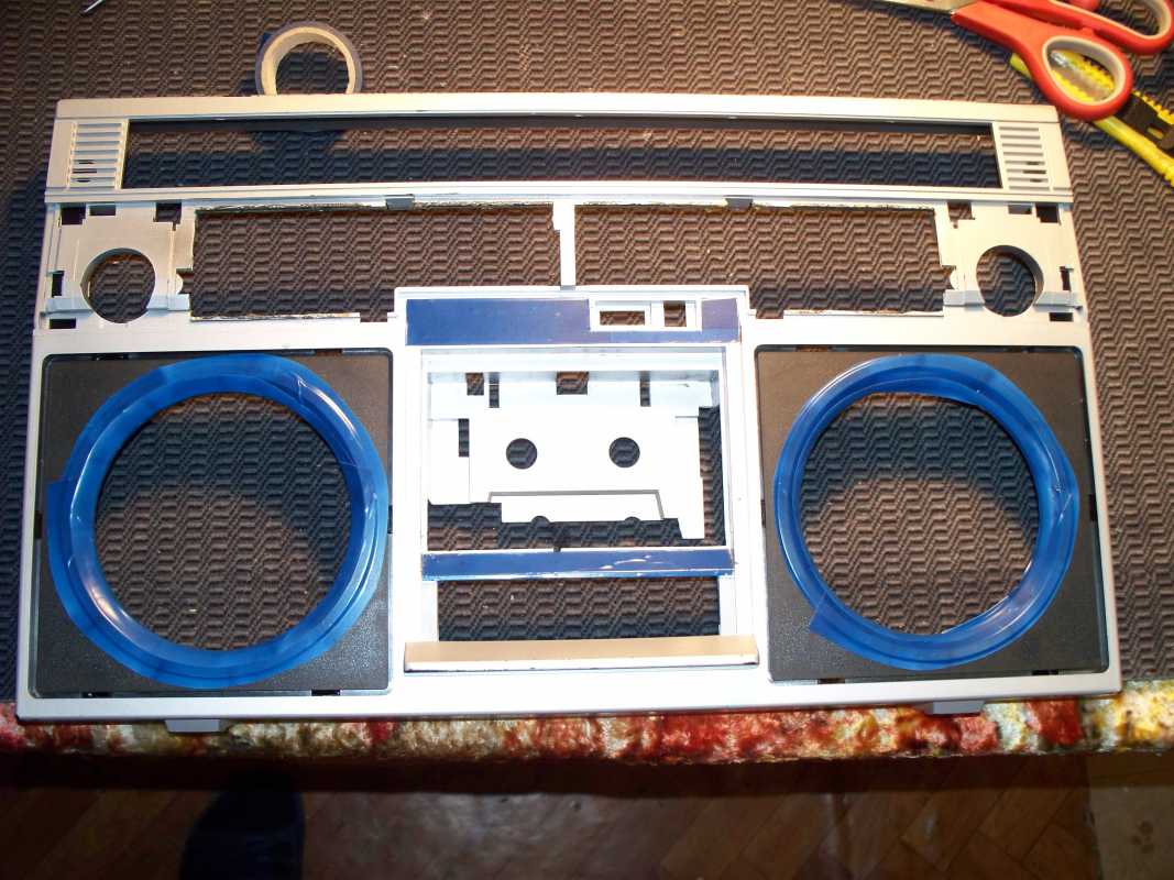 Как и все Шарпы разбирается он очень просто. Сзади выкручиваются винты, и снимается лицевая часть с динамиками. Динамики Шарповские, применяются во многих аппаратах этой марки, диаметром 16см, белого цвета.