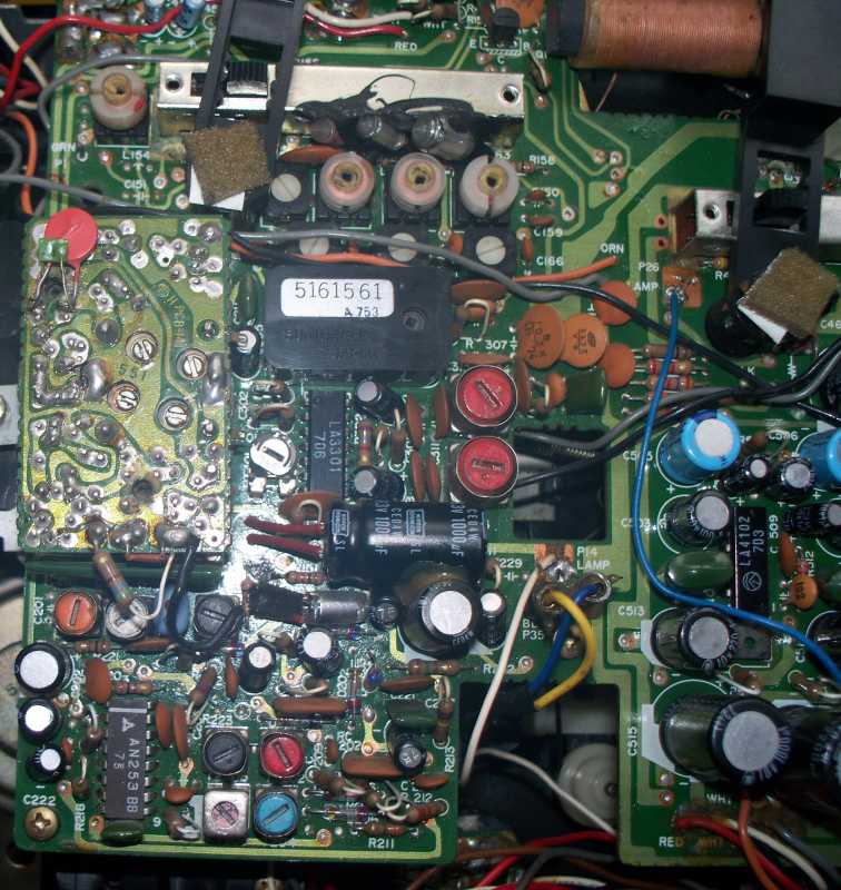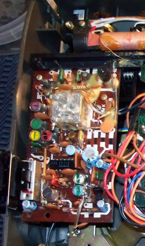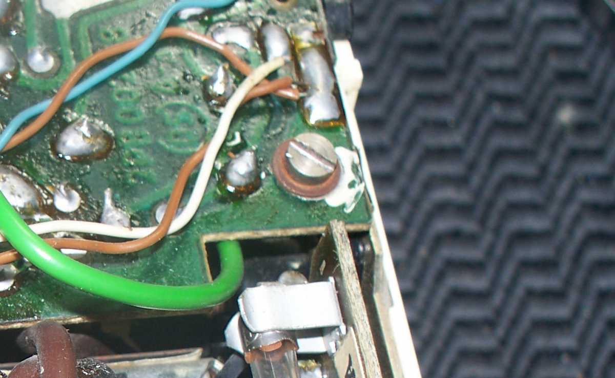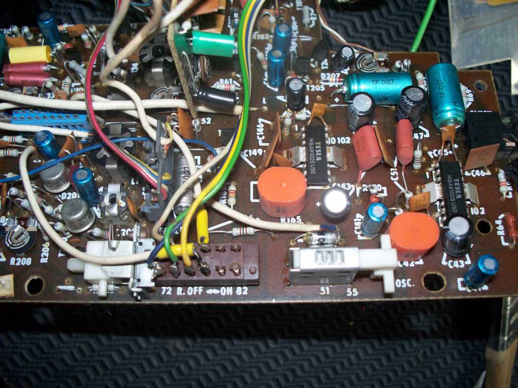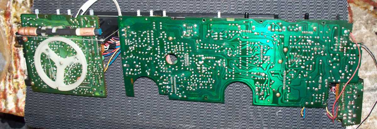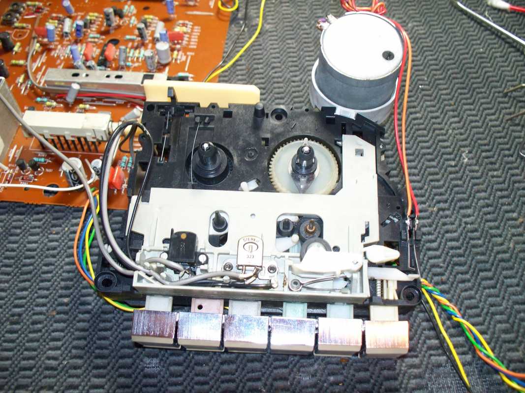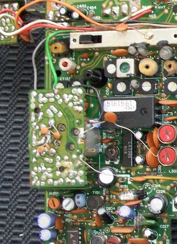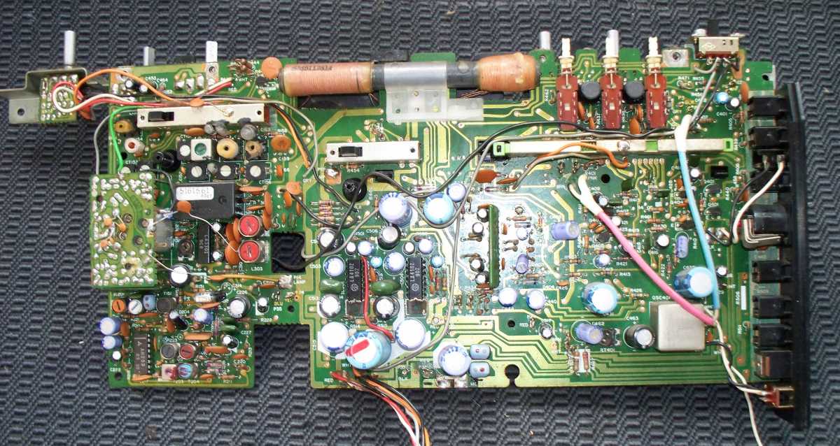 Ну а сейчас нужно немного поработать паяльником. Дело в том, что приёмник в этом аппарате был перестроен под УКВ диапазон. После изучения имеющихся у меня фото шарпов этой сери, пришёл к выводу, что вернуть диапазон на место не составит труда. Потом выпаял контура с тремя витками медной проволоки, намотал новые, но уже с двумя витками, и припаял их обратно на место. Манипулирую сжатием витков контуров ,вложил все станции в нужный диапазон. Теперь приёмник работает в FM, и без проблем принимает FM стерео. Ну и залил всё это парафином.