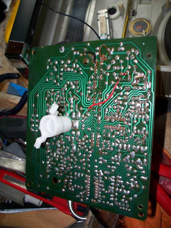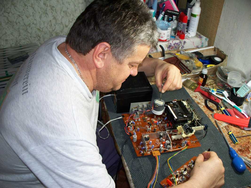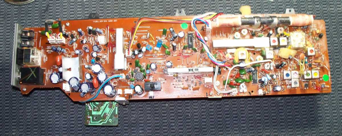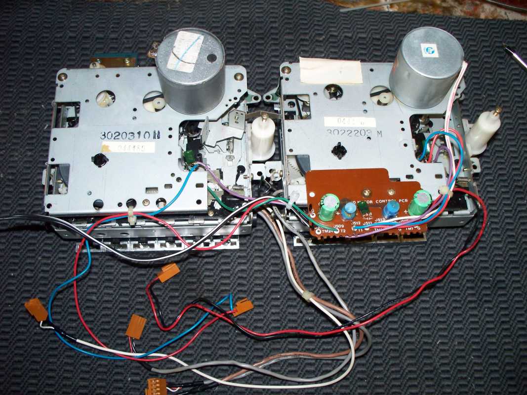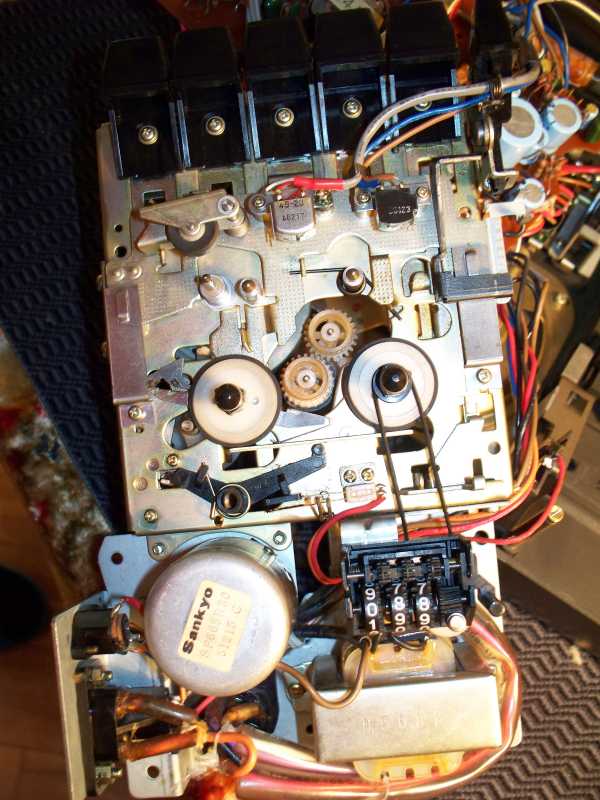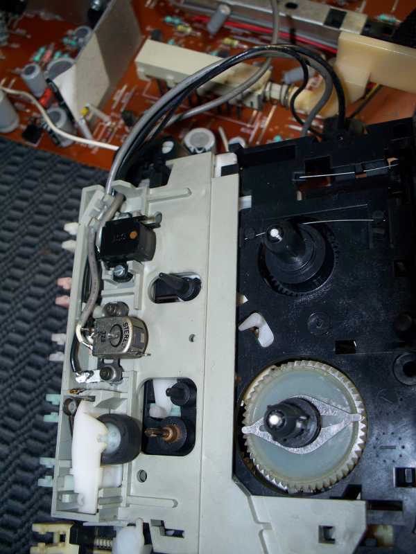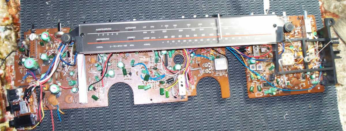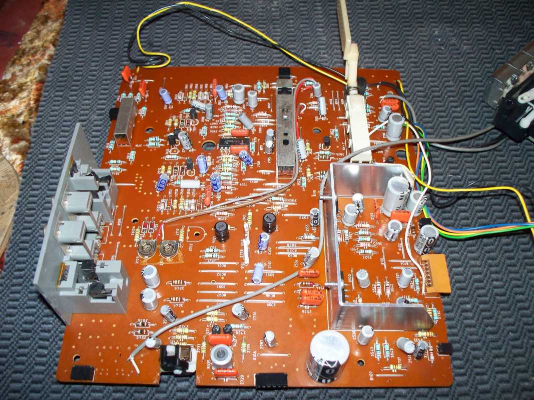Ну а сейчас нужно немного поработать паяльником. Дело в том, что приёмник в этом аппарате был перестроен под УКВ диапазон. После изучения имеющихся у меня фото шарпов этой сери, пришёл к выводу, что вернуть диапазон на место не составит труда. Потом выпаял контура с тремя витками медной проволоки, намотал новые, но уже с двумя витками, и припаял их обратно на место. Манипулирую сжатием витков контуров ,вложил все станции в нужный диапазон. Теперь приёмник работает в FM, и без проблем принимает FM стерео. Ну и залил всё это парафином.