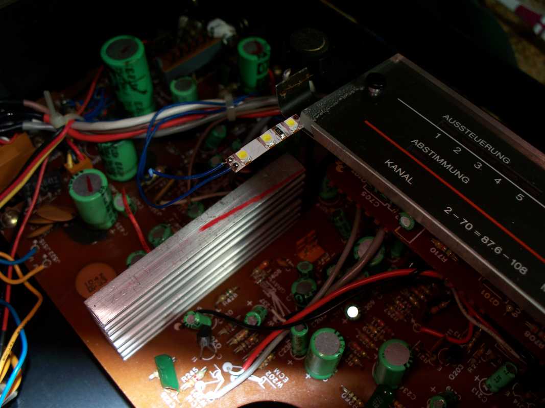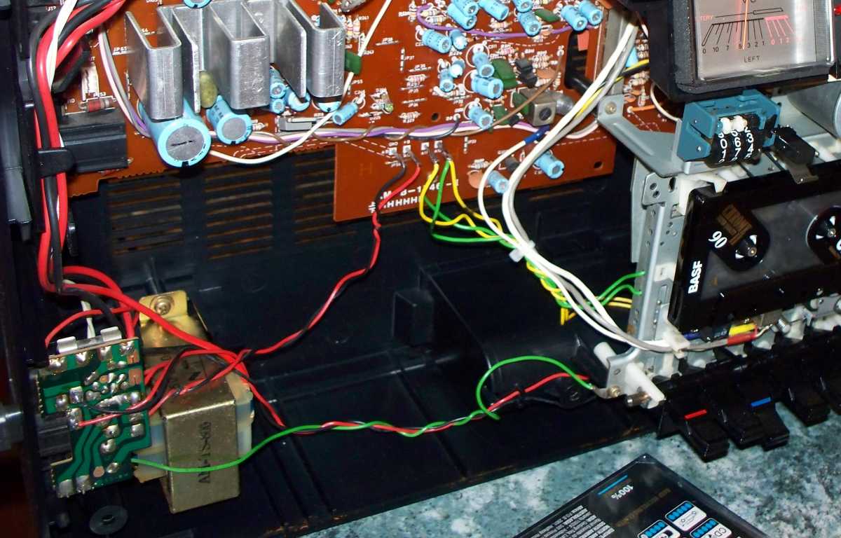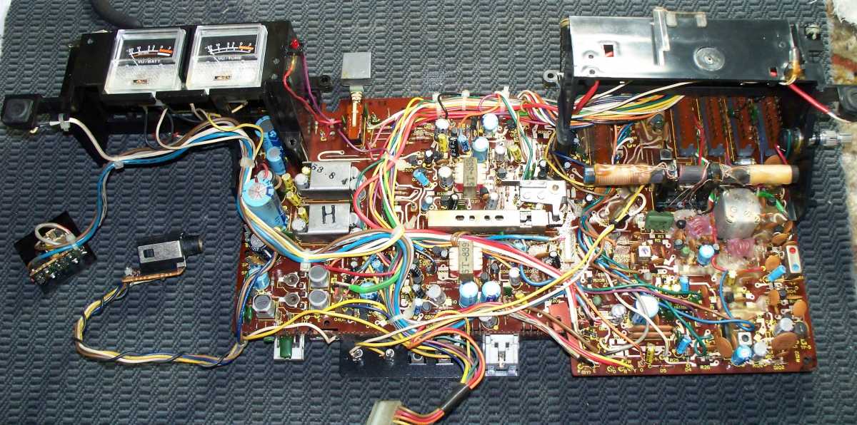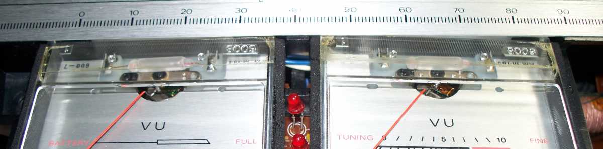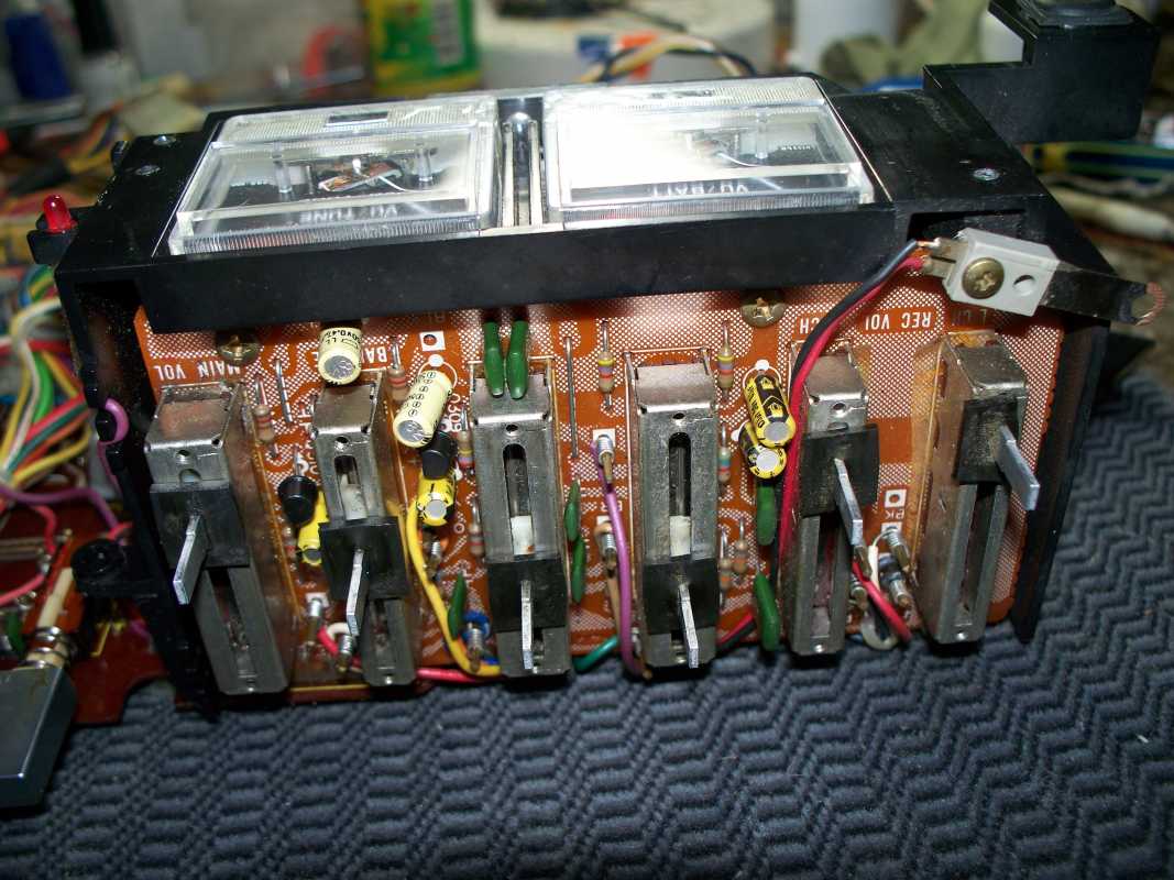 В верхнем левом углу магнитолы расположена плата управления звуком и стрелочные VU индикаторы тройного назначения.