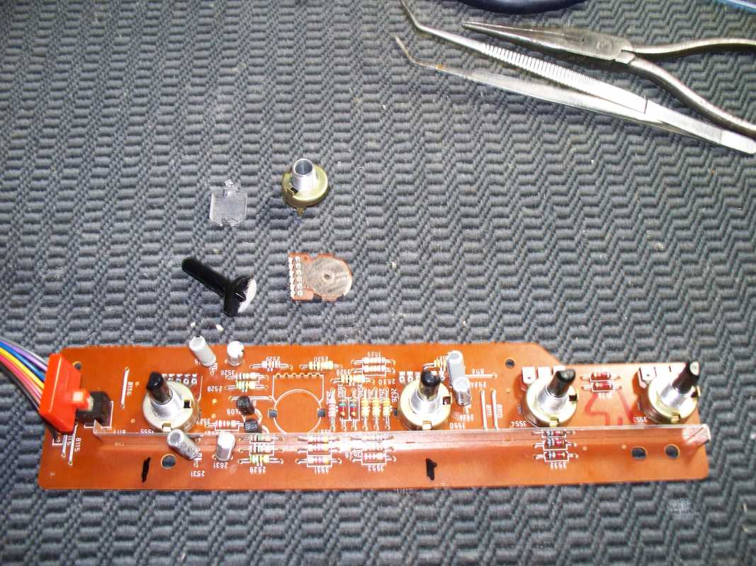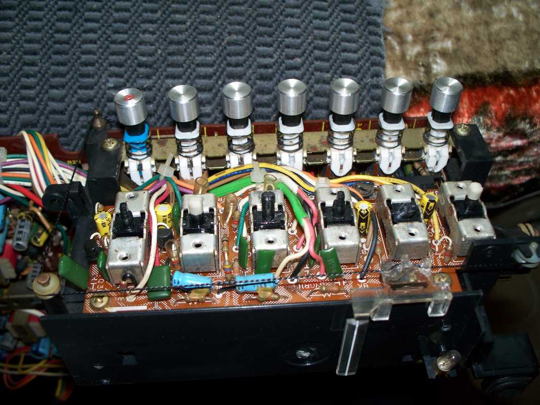 С права вверху управление приёмником и блок переключателей. На переключателях была утеряна одна насадка, пришлось изготовить новую, правда она немного отличается, но это не критично.