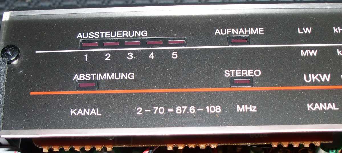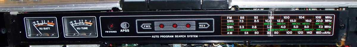 Шкала приёмника объединена в общую декоративную накладу, на ней расположены стрелочники, диод приёма станции в Стерео режиме, фирменный логотип и информационные табло системы APSS .