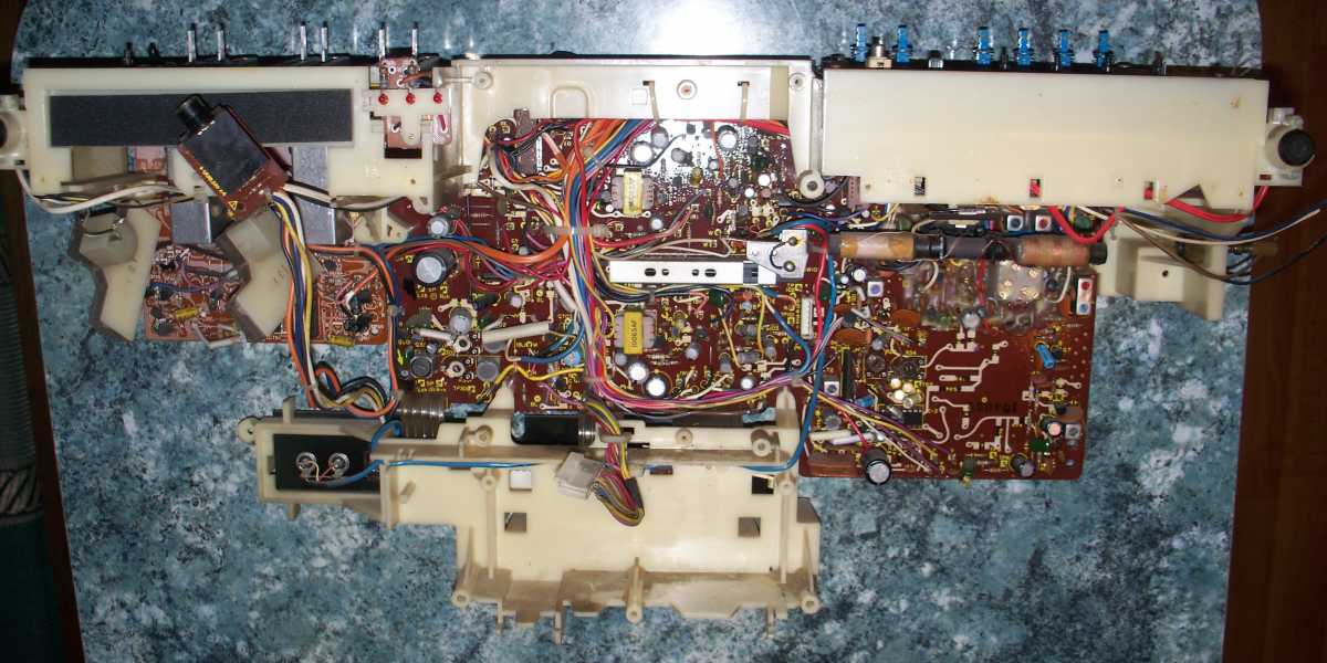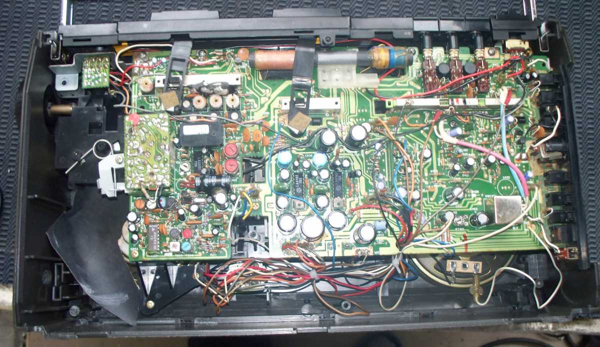 На корпусе остаётся только трансформатор и две антенны, каждая отвечает за свой диапазон. Трансформатор, он как у всех шарпов, работает с тремя видами напряжения.