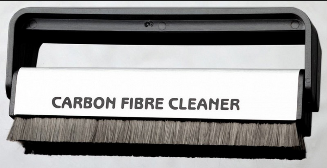 Обыкновенная карбоновая щётка для сухой чистки винила протирает влагу с обеих сторон и разводов и капель после высыхания не остаётся.