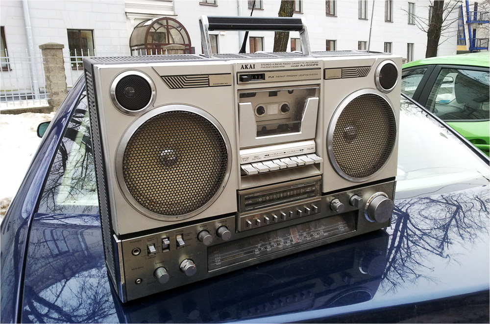 Магнитола AKAI AJ-500 комплектовалась зеленой демокассетой