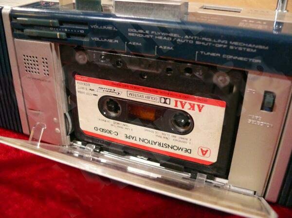 Одна из моих любимых магнитол в коллекции AKAI AJ-520 комплектовалась по разным источникам двумя демонстрационными кассетами. Иногда красной, иногда зеленой.