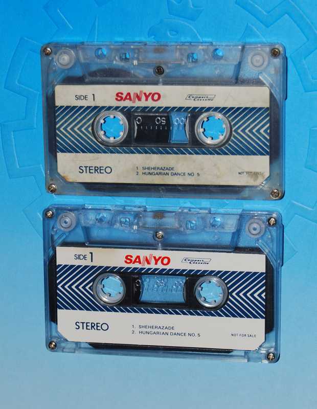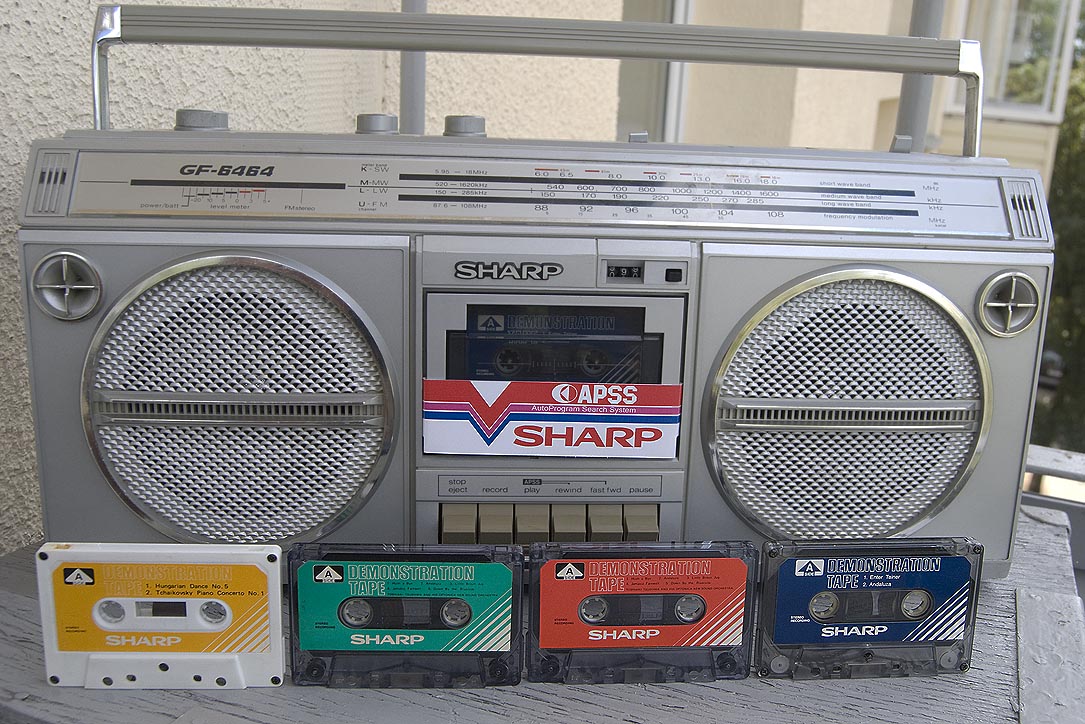 Были новые одинаковые, но различные магнитолы, Шарпы, Саньо, Кроун и т.д... с некоторой разбежкой по дате выпуска - демокассеты в комплекте иногда были разные! Но обязательно с надписью своего брэнда :) .