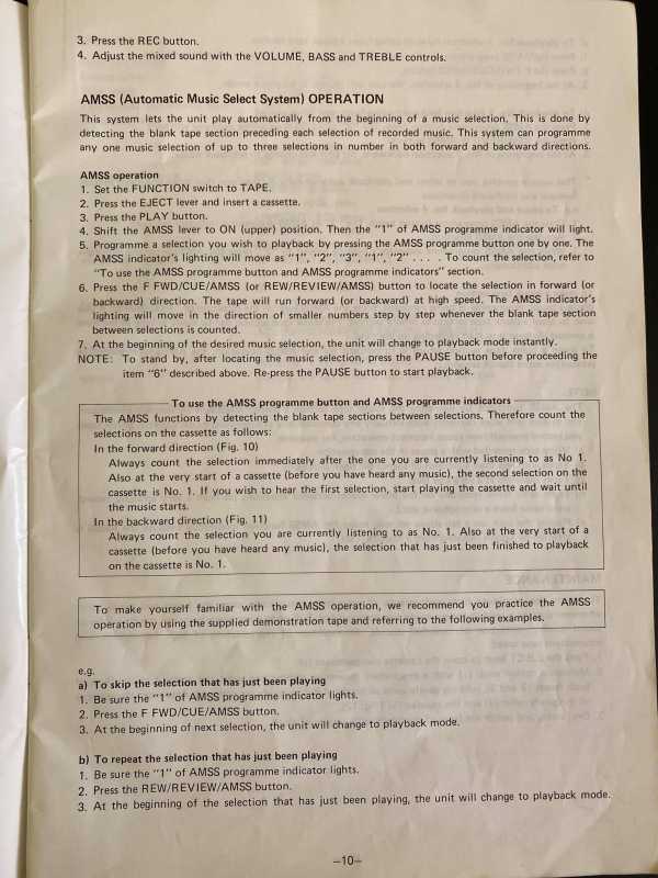 Она довольно сложная, но при должной сноровке мы получаем возможность автоматического повтора воспроизведения одной стороны кассеты, а также задавать промежуток для автоматического повтора. Для этого было необходимо активировать систему автоповтора специальной клавишей слева от клавиш управления кассетной декой, затем активировать функцию MEMORY, а потом клавишами START и END задать точки начала и конца промежутка для автоматического повтора. Эта функция позволяет автоматически повторять одну-две-три-сколько хотите композиций в любом месте кассеты. Во времена отсутствия FM- станций, когда мы слушали только кассеты, это был трындец.