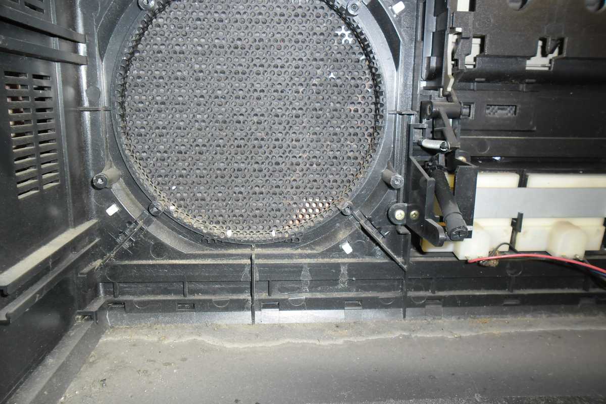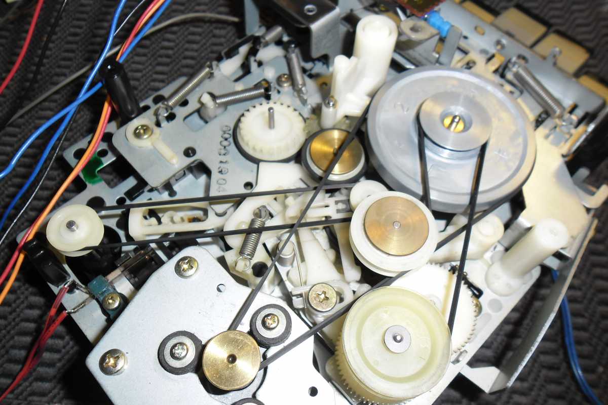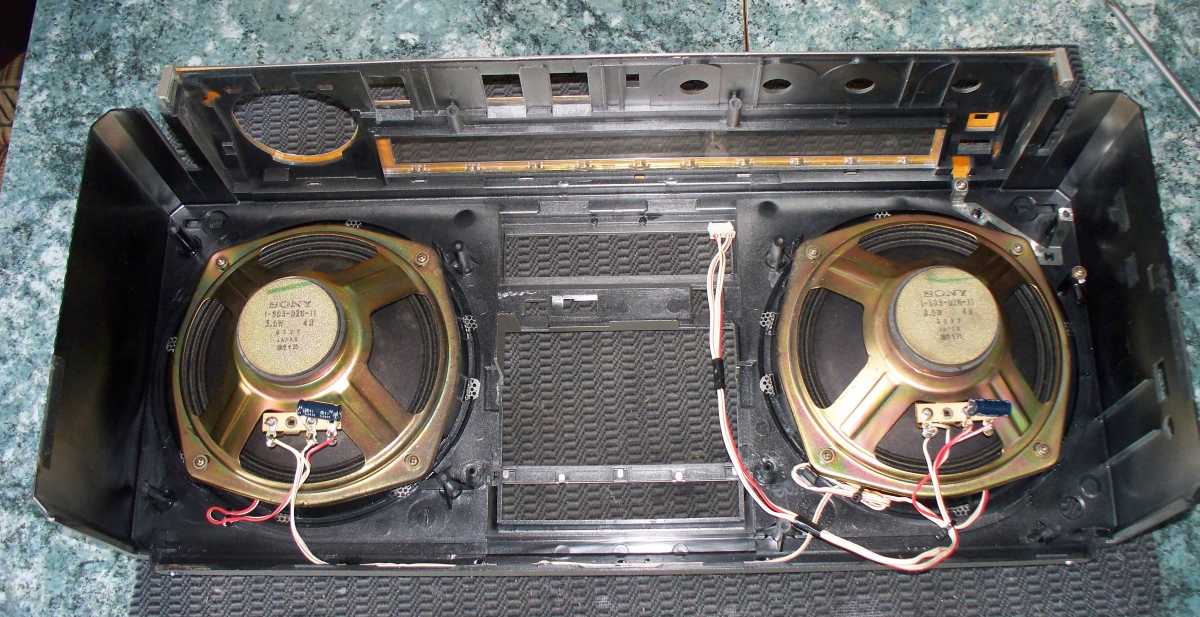 Как и обещал, сегодня обзор очередной магнитолы SONY. Цифровой индекс 99. Довольно серьёзный аппарат, топовая модель в линейке. Одно время, когда я коллекционировал магнитолы исключительно с динамиками 20 см., этот аппарат был моей мечтой, я спал и видел его у себя на полке. И вот мечта сбылась, один мой Московский товарищ подарил мне его. Естественно в не рабочем состоянии. Давно это было. Ох уж эти Сони, со своим космическим дизайном. Как и в случаи с 77й, собрать 99ю, без матюков просто не возможно. В прочем всё по порядку. Досталась она мне в не исправном состоянии.Много кто помогал мне её поднимать, Володя перестроил радио, так как магнитола с Японского рынка, и FM до 90, это не о чём. Ещё один мой друг тоже приложил свою руку и знания, ну и конечно я. В плане разбора ни чего сложного располовинить корпус нету, а вот собрать, множество ползунков, переключателей, и т.д. Но я пока разбираю. Снимается передняя часть с динамиками.И внутри конечно дебры из проводов и плат. Радио, основная плата, плата УНЧ, они все разделены и разбросаны по всей магнитоле. Плата УНЧ, с радиатором. Первым делом, я конечно заменил транс. Установил на 220 вольт. Максимально подобрав по размеру и мощности.Он стал как влитой даже в родную рамку. Родной защитный экран, тоже подошёл. Получилось всё классно. Дальше мойка корпуса. передней и задней части. Они огромные, и были ужасно грязные. Динамики 20 см. Дубовые, из довольно толстой бумаги. Звук меня не впечатлил. Вч, 5 см. Они традиционно расположены впереди Нч. И спрятаны под жалюзи, как в дорогой стационарной акустике. Сетки пришлось снять и перекрасить. Уж очень ржавые они были. Особую красоту в отделке динамиков придают красные колечки.Смотрится очень симпатично. Плата радио. Пришлось её снимать для перестройки диапазона.Не простым делом оказалось долесть до деталей, все они расположены под экраном. Верньерный механизм радио, очень не простая штука.Множество роликов, переходников, запутанное натяжение нити. Мне пришлось его снимать. Как мог зафиксировал. Он так же оснащён грузом для плавности хода. Верхняя часть, которая скошена, снимается вместе со шкалой. Радио было перестроено, пришлось делать и размечать новую шкалу. Решил её сделать в цвет индикаторов. Потом наклеит по верх старой. Результат не плохой. ЛПМ, ни чего нового, у многих магнитолах данной марки встречается. Довольно всё сложно и наворочено. Сложный механизм Soft-touch управления. Напрочь отказывался срабатывать, вернее работал через раз. Как потом выяснилось, всё дело в растянутом пассике, он просто буксовал и не проворачивал шестерёнки. Пассик очень длинный и толстый, найти такой не реально. Пришлось искать выход. На площадке, где крепились ролики, я просверлил другие отверстия, и таким образам получилось натянуть пассик. Всё стало работать на отлично. Так же есть поиск по паузам,на дисплее отображается номер трека искомого. А вот это, я даже и не знаю зачем.От стойки намотки ленты идёт маленький пассик, но он ни чего не крутит, просто одет на шкив, и крутится в холостую. Что за странность. И ещё один косяк, встречается довольно часто такая неисправность, это сломанный рычаг открывания деки. Пришлось ремонтировать. Вот наверное и всё с начинкой. Сейчас не много по внешности. Она характерна многим моделям производителя.Смотрится свежо и необычно. Верхняя скошенная часть из