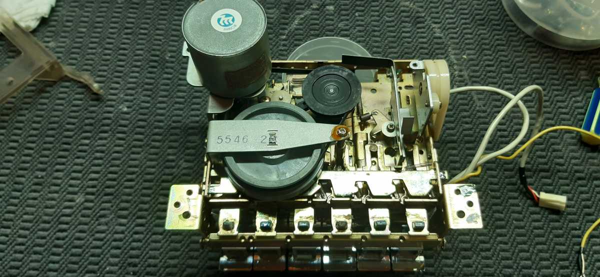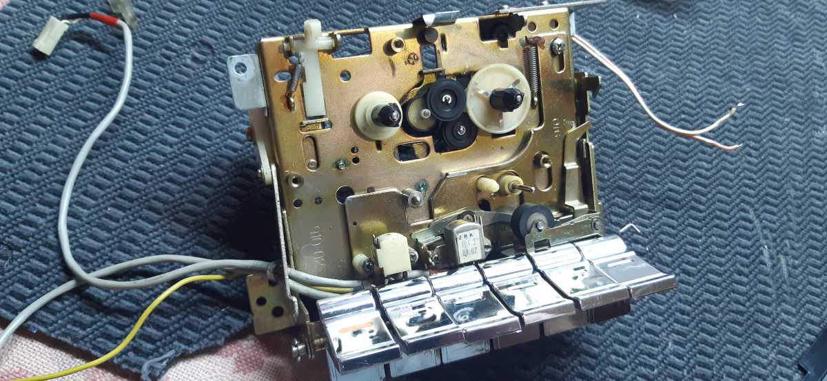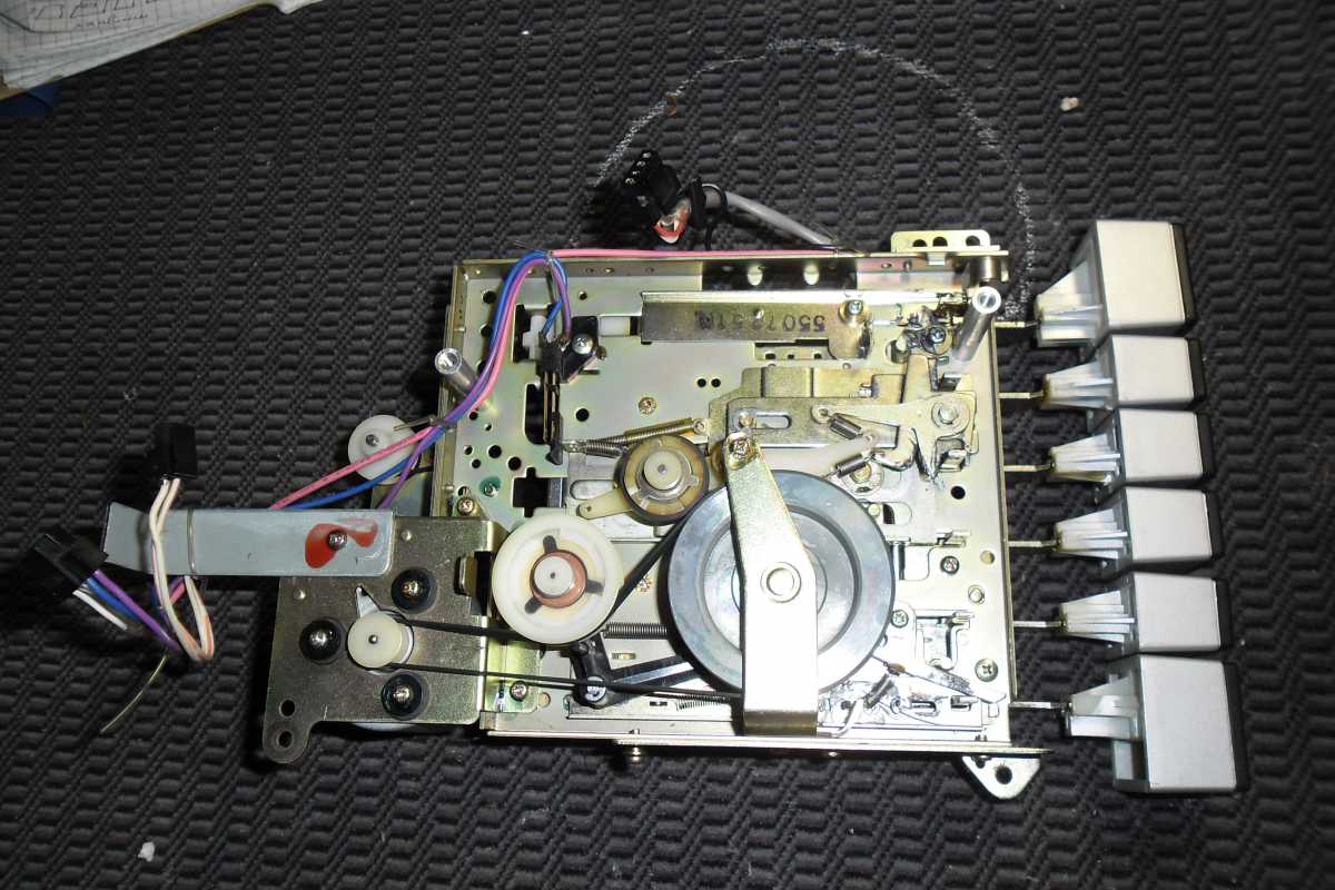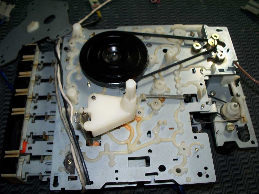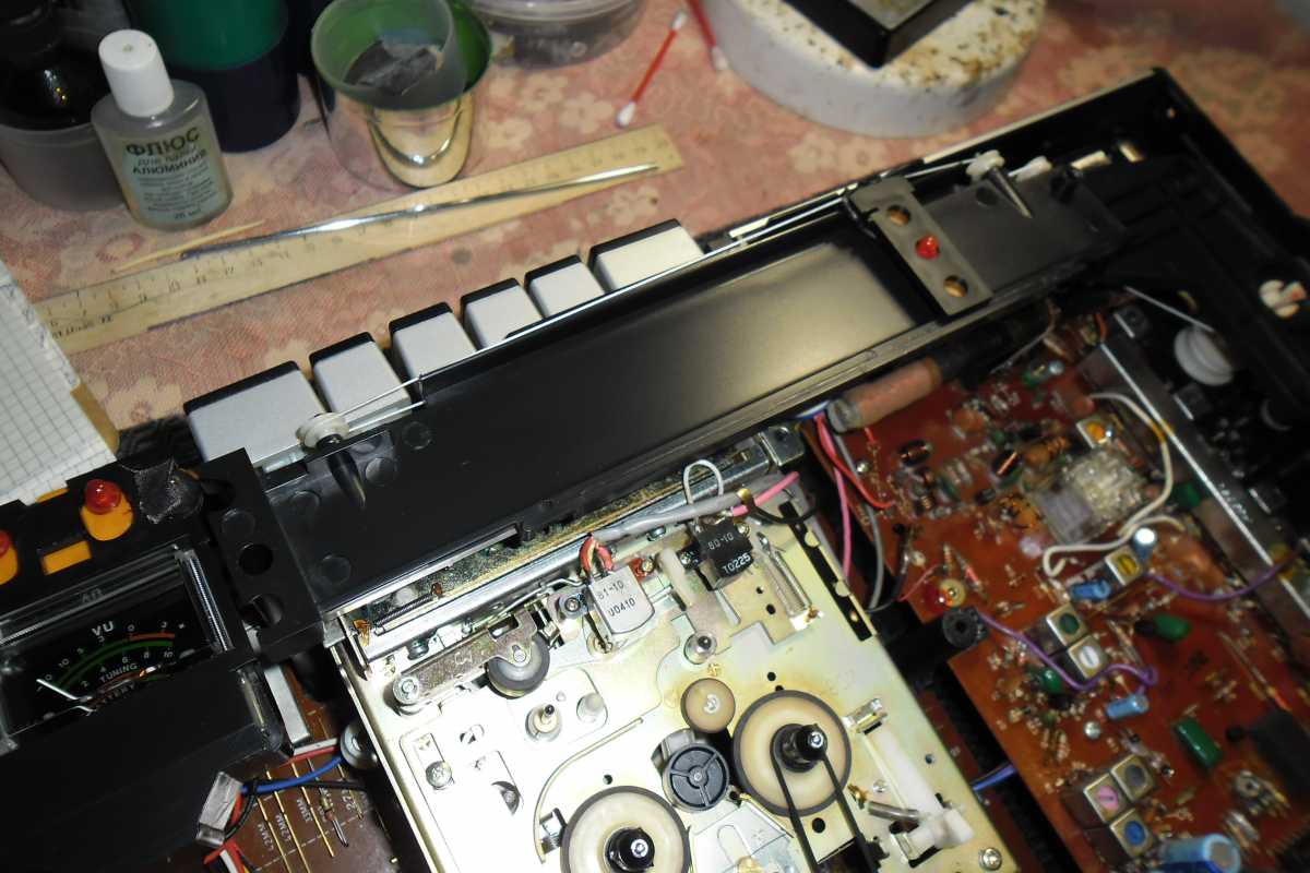 Магнитола долгое время лежала в запасниках, так как была в ужасном состоянии, и руки просто опускались, и не малейшего желания заниматься ею не было. Магнитола была куплена мною практически в слепую, и вот как оказалась, напрасно. Косметика ужасная, вся грязная, грили ржавые, изуродована алюминиевая накладка, отсутствовал один ползунок регулировки баланса, и т. д. Но при этом, приёмник работал отлично, кассета признаков жизни не подавала.И вот настал день, когда я всё таки решился с ней поработать.Я конечно понимал, что коллекционного варианта не получится, но всё же, мало ли кому понадобится хороший аппарат на дачу или гараж. Магнитолы Сони, со своим космическим дизайном, ужасно мне не нравятся в разборе. Прав до разобрать, куда не шло, а вот собрать, при помощи зубила и молотка, и ещё какой то матери, по другому ни как. Внутри наверное несколько пустовато, но основная платя спряталась пол ЛПМ. Дальше нужно извлечь начинку из корпуса. Несколько не привычное расположение резистора звука, он просто прикручен к корпусу, видно на плате ему не хватило места. Ещё одна интересная заморочка, соединение платы радио с антенной. Напаяны какие то не понятные перемычки, хотя есть просто пластина которую нужно было просто положить на стойку под плату. плата радио, и основная, разделены между собой. Также отдельно снимается верньерный механизм. С этой конструкцией были тоже неполадки. При настройке радио, был не понятный стук. Как оказалась, это была треснута шестерёнка механизма плавной настройки. Заморачиваться с изготовлением новой не стал, так как повторусь, магнитола восстанавливалась не для коллекции. Я просто её убрал с этого механизма, и разницы в плавности почти не увидел. Корпус отмыт, и можно потихоньку собирать начинку. Больше всего в магнитолах SONY, мне нравится шкала, вернее её цвет, и индикаторы.Очень гармонично смотрится. Основное неудобство при сборке магнитолы, из за огромного карата передней части, где расположены динамики.Одновременно нужно установить на нужное место кнопку включения, диод и ещё ползунки. Прав до ползунки можно снять с корпуса, и одной проблемой меньше. Динамики 20 см, и Вч 5 см. В паре с мощным усилком, не плохо поют. Прав до только на большой громкости. Динамики дубовые, с толстой бумаги, попробуй раскачай такие. Вч динамики, традиционно для SONY расположены впереди основных Нч динов. Сетки пришлось снять, отпескоструить, и перекрасить. Ну а сейчас, самый сложный механизм магнитолы, конечно же это ЛПМ. Он встречается в многих магнитолах данной фирмы, с незначительными модернизациями. ЛПМ с Soft-touch управлением. Очень сложно всё там.очень длинный пассик управления Soft-touch, сложный набор шестерёнок, одним словом ужас. Пассик заменить просто, а вот до лесть до его, проблема. Крышка кассеты работает как в крутых деках, сначала выезжает вперёт, потом открывается. Что мне не нравится, так это убогий пневматический демпферный механизм. Основная неисправность данной модели, как и у 88 и 99, это ломается клавиша открывания кассеты. Пришлось её клеить. Так же довольно часто у 77й ломается корпус куда вставляется ручка переноса магнитолы.Его просто распирает. Ну а сейчас внешность аппарата. Долго думал, что же делать с изуродованной накладкой. Хорошо, что ещё не полностью, а только узкий хвостик был повреждён. Пришла в голову гениальная мы