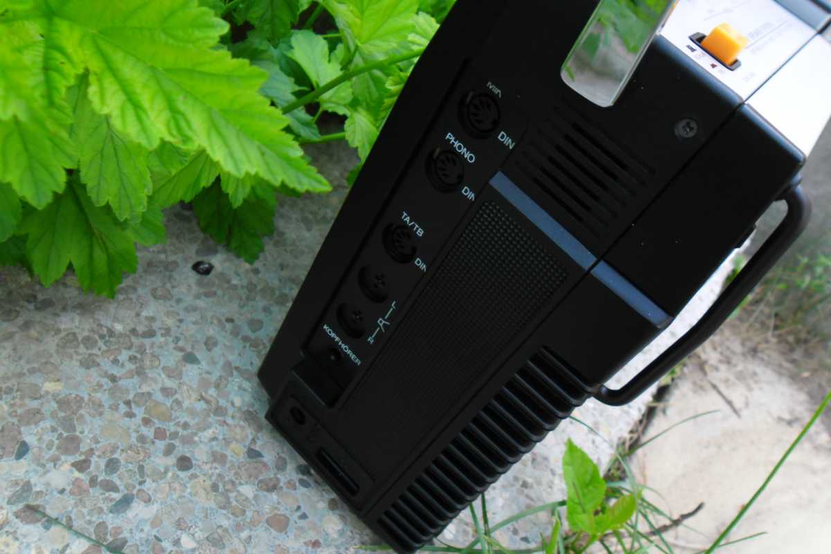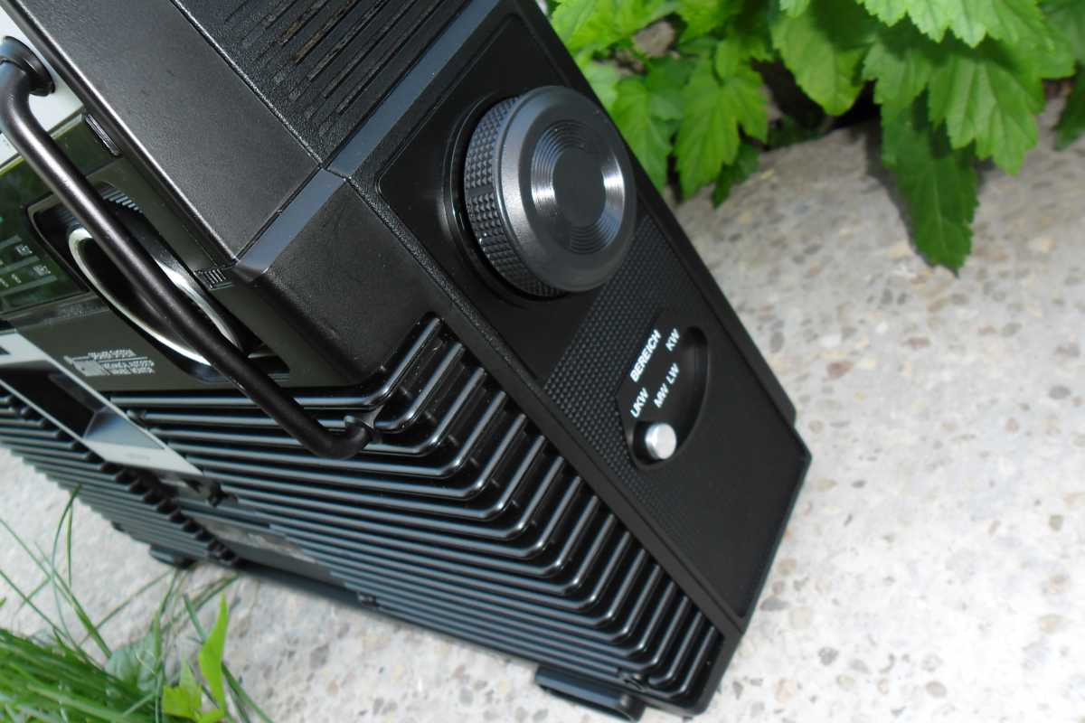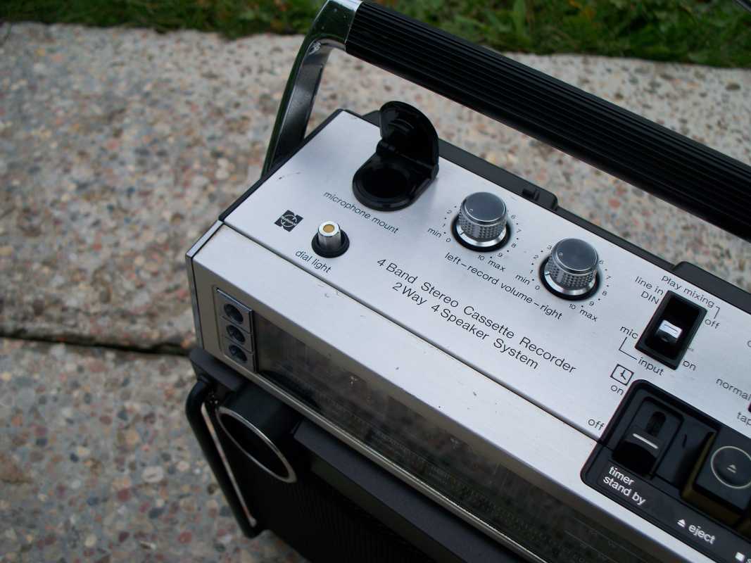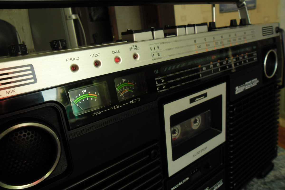 Ещё каких то лет десять назад, я и не мог себе представить, что на свете существует такое количество магнитол, вернее производителей и брендов. Множество торговых марок, фирмы которые заказывали магнитолы под своим брендом, магнитолы для различных торговых каталогов, магнитолы клоны, которые штамповали Китайцы, и т.д. Особенно мне нравятся магнитолы сделанные для Немецких торговых каталогов. Как правило все они производились в Тайване, но при всём это, сделаны качественно и надёжно, ведь в большинстве своём они продавались в странах западной Европы. Как правило все эти магнитолы очень сильно смахивают на какую ни будь именитую марку. Вот и сегодня, хочу рассказать об одной такой магнитолке, сделанной для Германии. За основу взяли знаменитую модель фирмы Panasonic с индексом RS-4350 L. В следующем обзоре я расскажу об этой моделе. А пока только фото для сравнения. Ну да ладно, магнтола, о которой пойдёт речь сегодня, не менее красива и интересна. Очень оригинальное исполнение, стиль конца 70х. Смотришь на её, и пак хочется на жать кнопочку, и слушать хорошую музыку, а эти стрелочные индикаторы, они просто завораживают. И так. Магнитолка конечно же красавица, но что бы она радовала глаз и слух, её нужно развинтить, помыть, смазать, устранить неполадки и т.д. Снимаем переднюю часть, и вся начинка остаётся в корпусе. Внутри две платы, проводов много, но не критично, встречаются разъёмы и пайка. Усилок на двух микросхемах, в качестве радиатора используется обычная металлическая пластина. Плата радио снимается отдельно, прав до вместе с верьерным механизмом. А вот стрелка с планкой крепится отдельно и соединяется с платой через специальный переходник. На планке шкалы, нет ни каких надписей, они все на корпусе, зато стрелка со светодиодом. Не раз речь пошла о радио, тогда нужно и о антенне пару слов написать. Она в данной магнитолке внутреннего расположения. Не часто такое встречается, но бывает, особенно такое расположение антенны присуще компании GRUNDIG. В левом верхнем углу расположились стрелочные индикаторы, правдо они не очень больших размеров, но глаз радуют. Над стрелочниками информационные диоды. В зависимости от выбранной функции, загорается соответствующий диод. ЛПМ у магнитоки сплошной метал, как и положено, в те времена не умели экономить, а старалась делать надёжно. Всего один плоский пассик, перемотки и подмотка плёнки, в при помощи прижимного ролика. И ещё что порадовало, головки и подключение контактов и моторчика, всё на разъёмах. Так же ЛПМ оборудован автостопом и счётчиком ленты. Правда авто стоп не полный, а обычный рычажок, который срабатывает от натяжения ленты, когда заканчивается кассета. Акустика, как и положено хорошей магнитолке, двух полосная. О чём гласит гордая надпись на борту. С правильными Вч динамиками, правда они всего 3 см, а вот Вч всего 14 см. Всё производства Тайвань, от довольно известной фирмы FOSTER, встречаются довольно часто. Блок питания скромных размеров. Предохранитель не на плате, как у большинства магнитол, а в специальной капсуле. Ну, что же, вот пришло время и поговорить о внешности магнитолы. Наверное начну с разъёмов. Они как и положено магнитоле для рынка Германии, не тюльпаны, а обычные штырьковые, как и в Советских аппаратах. Магнитола даже имеет встроенный фоно корректор. Магнитола имеет строгий дизайн, где