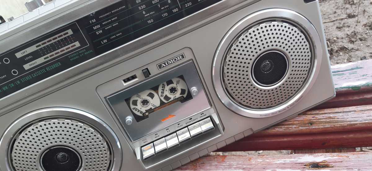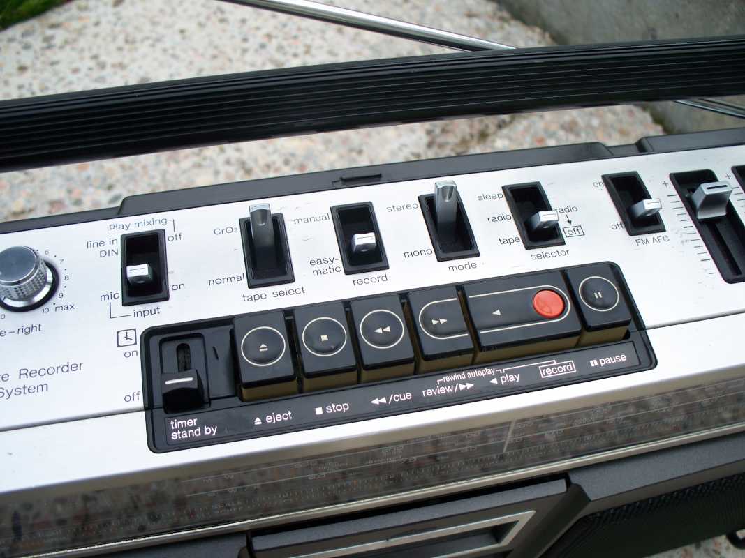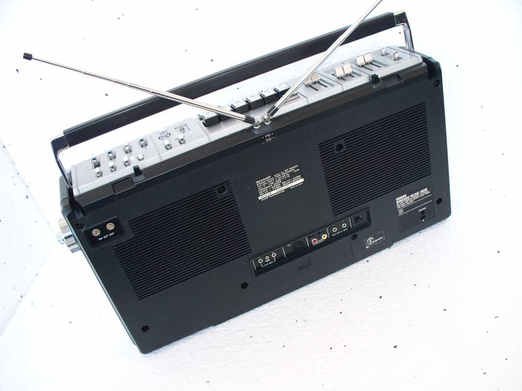 Сегодня у меня очередной обзор, на этот раз просто убийственная магнитола.Когда её покупал, я знал что она большая, но что бы на столько. Это просто огромная, я повторяю, огромная, 858 mm в ширину с колонками, и вес почтит 15 кг. Очень богатый функционал. Возможность подключения музыкальных инструментов, таких как электро гитары, микрофонные входа. Самая мощная из всех магнитол выпускаемых в мире 208 ватт (PMPO), специально разработанный 16 см динамик обеспечивал уникальный звучание. 10 полосный эквалайзер, пиковый индикатор, таймер- часы, да чего только нету в этой магнитоле. Корпус и в магнитоле и в колонках из ДВП. Магнитола достаточно редкая, но тем не менее породила огромное количество клонов. И так, что же это за такая чудо магнитола. Sharp HK-9000 Z(BK). 1985 год. Начну обзор пожалуй с колонок. Изготовлены они из ДСП. Огромные и тяжёлые.Как и все колонки такого типа, разбираются они не совсем традиционно. Что бы снять динамики, сначала нужно снять декоративные сетки. Они держаться на резинках в корпусе колонок. Дальше всё просто. Выкручиваются винты, и снимается пластиковая часть вместе с динамиками. Динамики всего 16 см, но достаточно мощные, специально разработанные для этой магнитолы. Хотя внешне ни чем не отличаются.Также Нч бумажные. Вот вся конструкция. Мощный корпус колонки. На шильдике указана мощность акустики. Ну а сейчас будем смотреть саму магнитолу. Корпус тоже из ДСП, с мощной ручкой, которая прячется во внутрь, как у некоторых огромных чемоданах. Задняя крышка как в старой радиоле. На крышке огромное количества различных надписей и инструкций, например, как правильно наматывать шнур питания. К ней прикручен блок для батареек.Их там аж десять штук. Под крышкой начинается самое интересное.Огромное количество проводов, плат, железных перемычек и т.д. Понимаю, что нужно извлечь деревянный макинтош. Он крепится к железному каркасу снизу, и в глубине к пластиковой передней части. И вот вся начинка как на ладони.Хорошо, что пайки практически нету, всё на разьёмах и шлейфах.Что бы не перепутать, такое огромное количество проводов, нужно всё подписывать. Всё платы легко извлекаются для чистки , смазки и .тд.д. Эквалайзер. Часы с таймером и пиковыми индикаторами. Часы работают от одной батарейки. На индикаторах с экономили.Они общие на правый и левый канал.Хотя визуально на лицевой поннели они как будто бы разделены. Огромная плату управления функциями и плата системы поиска APLD . В самом верху магнитолы расположена плата приёмника.Это основной пыле сборник. Можно подключить наружную антенну, не забыв переключить устройство. Отдельно хочу остановиться на Питании магнитолы и УНЧ. Они смонтированы на одной плате. Мощный аппарат требует и соответсвенно и хорошего усилителя и блока питания. Огромный радиатор выходной микросхемы. Ну и осталось, это ЛПМ.Ни чего нового, всё слегка модернизировано. ЛПМ, они практически идентичны Шарпу 800.На первой деке возможность поиска музыкальных треков и возможность изменение скорости движения ленты в пределах 5%. Вторая дека идентична.Только добавили функцию записи кассеты, соответственно и головку. Магнитола оснащена функцией ускоренной перезаписи, и последовательного воспроизведения кассетных дек. Также имеются в наборе и полезные разъёмы. Ну вот кажется и всё. Лишь на последок о звучании аппарата. Да, мощный, не п