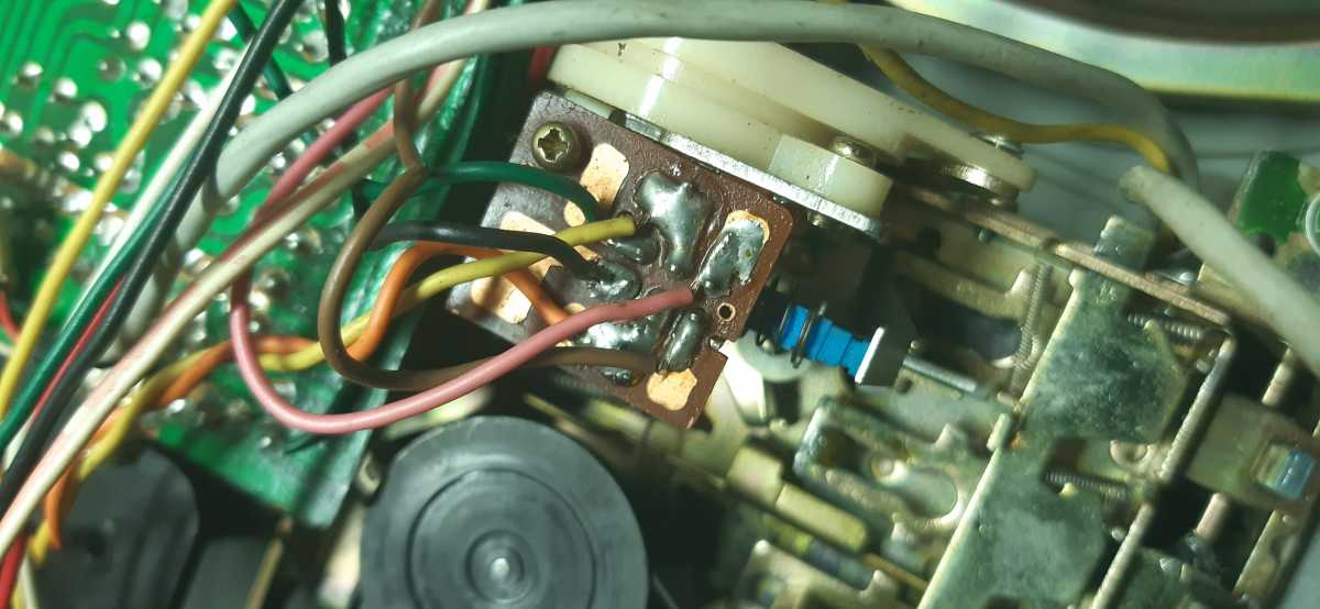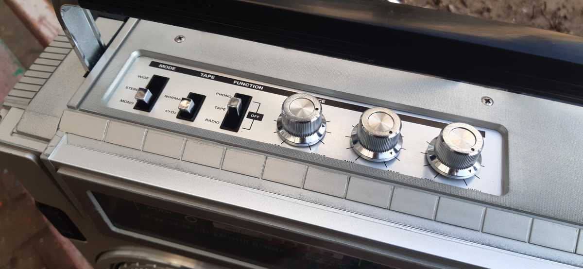 Хватит прелюдий, сегодня мой рассказ об очень симпатичной, причтной в обращении магнитолке с индексом GF8080. Sharp GF-8080 H Компактная, в разборе не очень удобная. Пайка, разьёмы отсутствуют, даже на головках, и по этому всё приходится извлекать одновременно. Плата радио извлекается вместе с верньерным механизмом. Радио имеет индикатор настройки на волну.И конечно же индикатор стерео режима. ЛПМ, как и положено в те времена, сплошной метал, всё просто и надёжно. Без огромного количества пассиков и подмоточных роликов. Ну а это, на сколько я понимаю, так реализован авто стоп, такой своеобразный датчик хола. Когда перестайт прощаться счётчик ленты, срабатывает авто стоп. Огромный соленоид системы поиска, известная в миру как APSS. Вообще, для 1975 года, магнитола с данной системой была сенсацией. При поиске трека, на лицевой части магнитолы, моргал зелёный глаз с надписью APSS, очень красиво смотрится. Динамики крошечные, чуть больше 10 см.Но они имеют Одно Но, не мало важное в мире звука. Бытует мнение, что динамики с П образными рамками магнитов, играют на порядок лучше. Для предотвращения попадания грязи и пыли в динамики, установлена защитная сетка. На задней крышке, как и в большинстве случаев, расположен блок питания. И конечно же не обошлось без мелкого ремонта. Как всегда, или точнее часто, в виду хрупкости старого пластик, ломаются стойки крепления. Лечу это я традиционно, при помощи антенны.Отрезаю колечко нужного диаметра, нагреваю его и одеваю на расколотую часть. В магнитоле определённое количество времени были установлены батарейки. Всем известно, к чему это приводит. И это мне удалось вылечить. Ржавчина на пластике была вымыта специальным средством, металлические части и отпескоструены. Ну вот, всё помыто, смазано и т.д., магнитола собрана и радует глаз своей прекрасной внешностью. Ну вот и результат, малютка, во всей красе. |