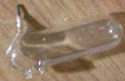 Эта фигота пришла по почте вместе с лампами и МТХ-90. Мелкая колба 3 см в длину. Напротив металлического вывода отверстие в стекле.. :(